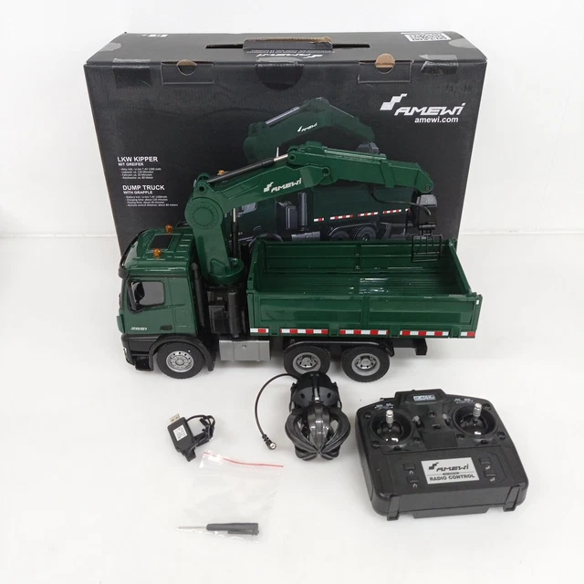 Alter, dieser Mercedes-Benz Arocs Kranwagen ist der absolute Hammer! Das 1:18 Modell im metallic-schwarzen Design sieht nicht nur mega aus, sondern kann auch was: Mit dem proportional steuerbaren Kranaufbau bewegst du Lasten super präzise. Es gibt sogar zwei verschiedene Greifer - einen für Holz und einen für Schrott - plus einen Kranhaken. Die Mulde kippt per Fernbedienung und die Bordwände kannst du auch noch manuell öffnen. Mit 4WD-Antrieb und 4-Rad-Lenkung fährt sich das Teil wie ein echtes Auto. Und das Beste: Soundmodul mit Rückfahrwarnton und LED-Beleuchtung sorgen für total realistisches Spielvergnügen. Das Set ist sofort startbereit - inklusive Fernsteuerung, Akku und Ladekabel. Bis zu 20 Minuten Spielspaß am Stück! Für Kinder ab 8 Jahren (aber ehrlich gesagt, auch Erwachsene haben damit ihren Spaß). Einfach auspacken und loslegen - perfekt für alle Baustellen-Fans da draußen!