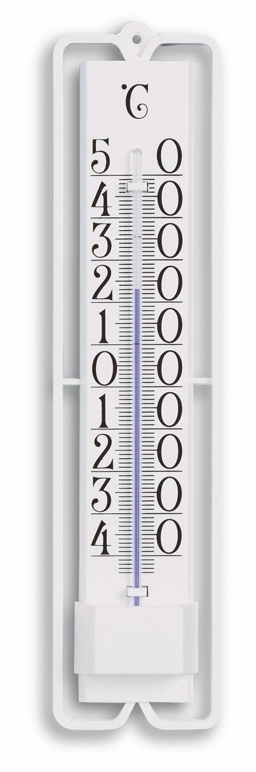 Immer die richtige Temperatur im Blick! Dieses klassische analoge Thermometer von TFA Dostmann zeigt dir zuverlässig die Temperaturen drinnen und draußen an. Hergestellt in Deutschland aus silbern lackiertem Metall, wetterfest und besonders genau durch 2-Punkt-Justierung. Perfekt zur Heizkostenkontrolle innen - jedes Grad weniger spart bis zu 6% Energie! Draußen gibt's dir wichtige Infos für Garten, Freizeit und Beruf. Einfach aufhängen, keine komplizierte Montage. Das Thermometer wird mit speziell eingefärbter Flüssigkeit gefüllt - ganz ohne Quecksilzer! • Skala: -30°C bis +50°C • Material: lackiertes Metall • Maße: 195 x 48 x 16 mm • Gewicht: 99 g • Made in Germany • Wetterfest • Inkl. Thermometer
