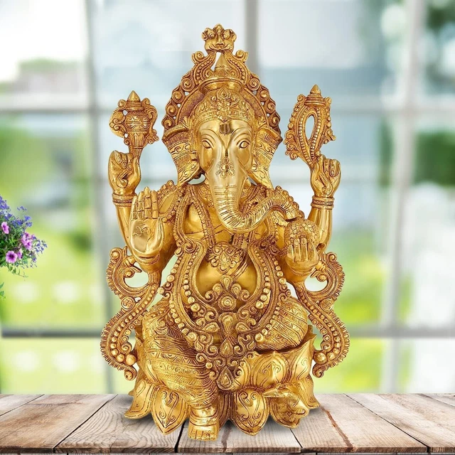Diese wunderschöne Ganesha-Statue bringt indische Spiritualität in dein Zuhause! Aus hochwertigem Messing handgefertigt, sitzt der Elefantengott meditativ auf einer Lotusblüte. Mit 12cm Höhe ist sie perfekt für den Hausaltar, als Tischdekoration oder in der Vitrine. Ganesha steht für Weisheit, Erfolg und das Überwinden von Hindernissen - ein tolles Symbol für positive Energie. Die Details sind absolut beeindruckend: Jede Linie, jedes Ornament ist mit Liebe zum Detail gearbeitet. Ob für deine eigene Meditation, als Geschenk zu Diwali oder einfach als kunstvolles Deko-Objekt - diese Statue ist immer passend. Macht sich super im Wohnzimmer, Büro oder Yogaraum. Mit 950g Gewicht fühlt sie sich wertig an und steht stabil. Ein Stück fernöstlicher Kultur, das Ruhe und Harmonie ausstrahlt. Auch als Geschenk zur Hochzeit oder Einweihung perfekt - symbolisiert einen guten Neuanfang!