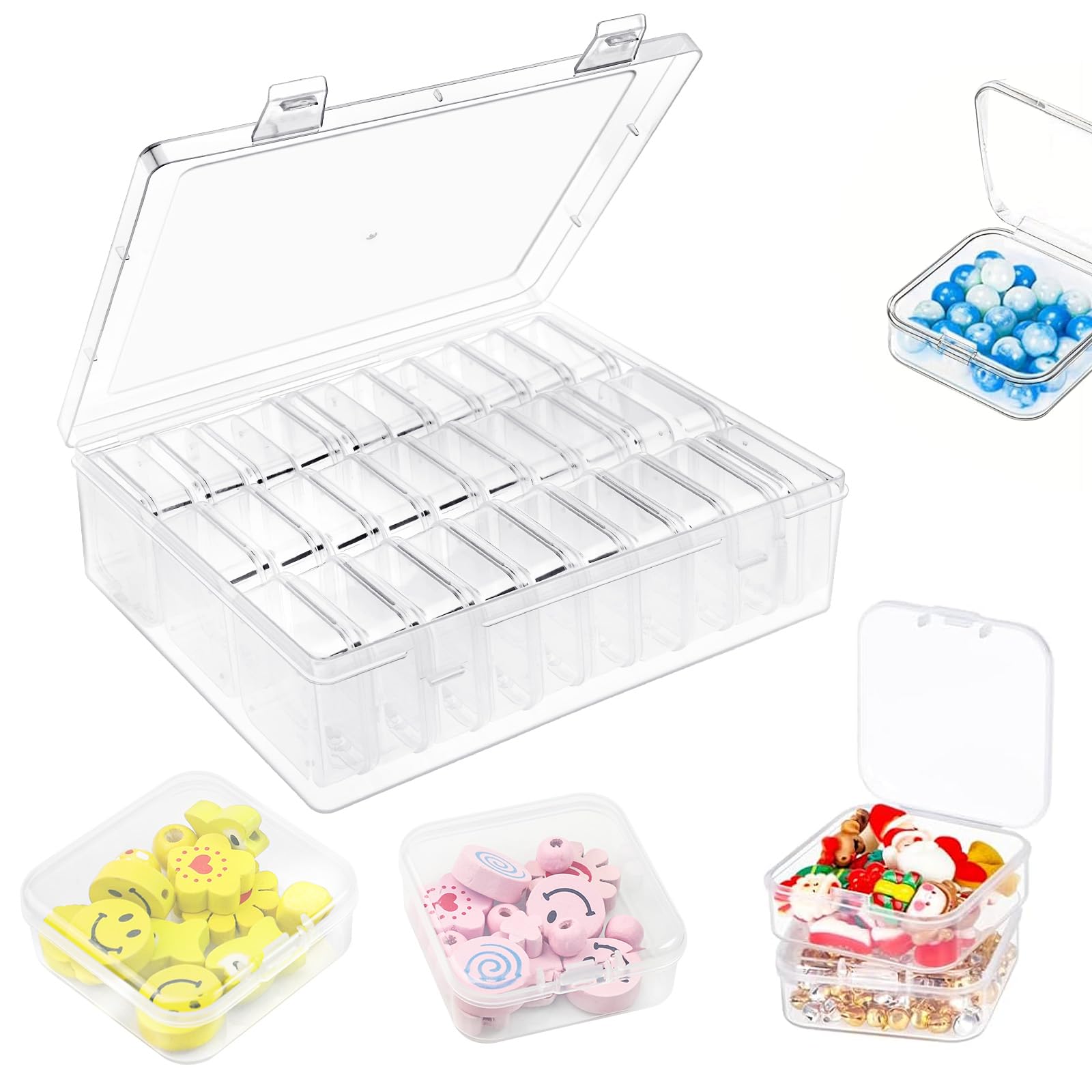Perfekt für alle, die Ordnung lieben! Dieses 7-teilige Set von Zyghjort besteht aus 1 großer Box (18,5×12,5×4,2cm) und 6 kleinen Mini-Boxen (5,5×5,5×3cm) - alles aus stabilem PP-Kunststoff und komplett transparent, sodass du sofort siehst, was drin ist. Die kleinen Boxen haben praktische Klappdeckel, die deine Schätze sicher vor Staub und Feuchtigkeit schützen. Super für Schmuck, Ohrringe, Ringe, Perlen, Münzen oder Bastelmaterial. Ob im DIY-Bereich, für die Schmucksammlung oder als Reise-Organizer - diese Boxen sind echt vielseitig! Die klare Optik sieht nicht nur sauber aus, sondern macht das Suchen zum Kinderspiel. Einfach die kleinen Boxen in der großen verstauen und schon hast du alles ordentlich an einem Platz. Praktisch, übersichtlich und langlebig - so macht Aufräumen Spaß!