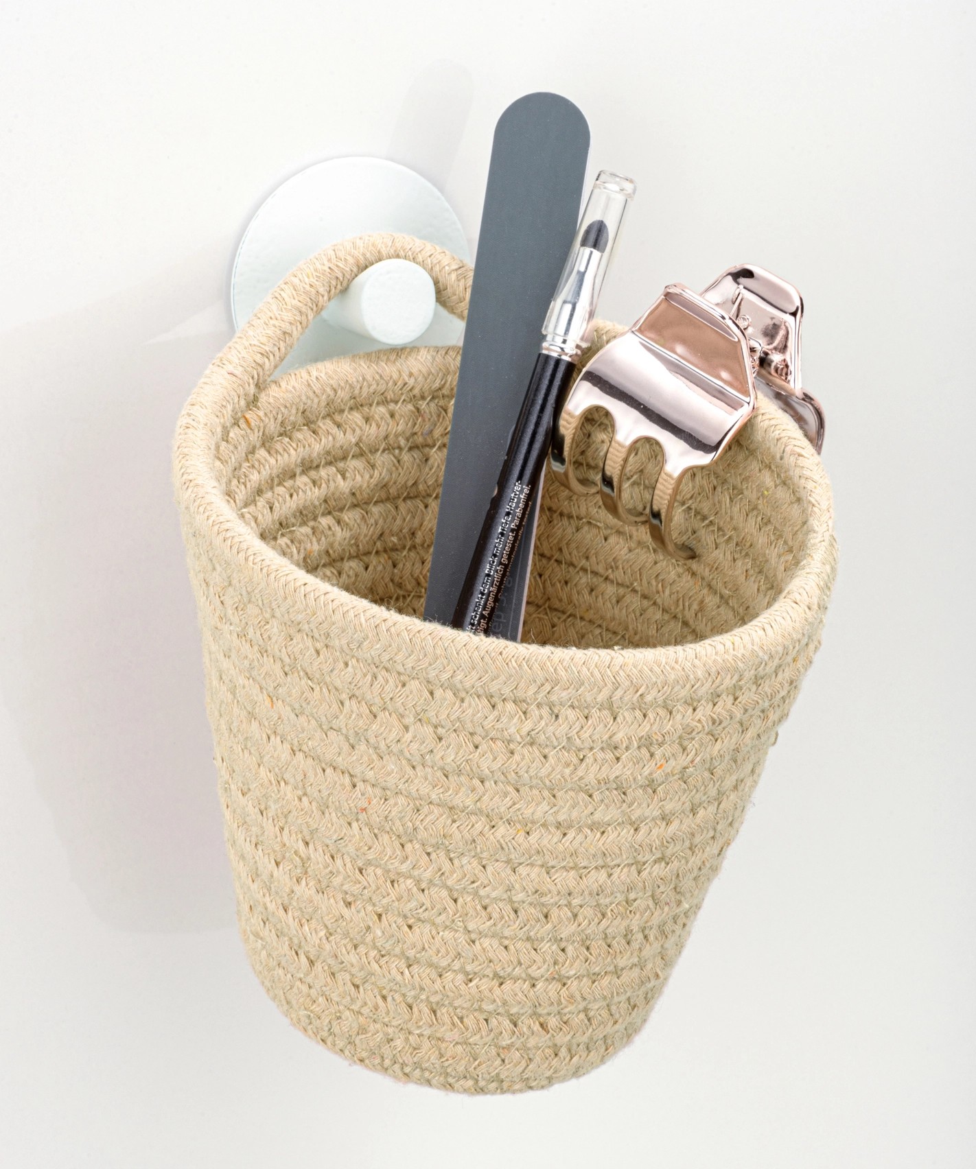 Dieser süße Badkorb von WENKO ist einfach praktisch! Mit seiner grauen Farbe und der cleveren Aufhängeschlaufe findest du endlich Platz für all deine Kosmetik-Sachen. Ob Bürsten, Nagellack, Pinzetten oder Pinsel - hier ist alles ordentlich verstaut und griffbereit. Das hochwertige Baumwollgewebe mit Polyester ist nicht nur stylisch, sondern auch super langlebig. Mit den Maßen 12,5 x 12 x 14,5 cm passt der Korb perfekt ins Bad, aber auch ins Kinderzimmer für Spielsachen oder in die Küche für Utensilien. Einfach aufhängen und schon hast du mehr Ordnung! Die feine Verarbeitung und das moderne Design machen diesen Korb zum echten Hingucker. Seit den 1950er Jahren steht WENKO für gute Ideen im Haushalt - und dieser Korb beweist es wieder!