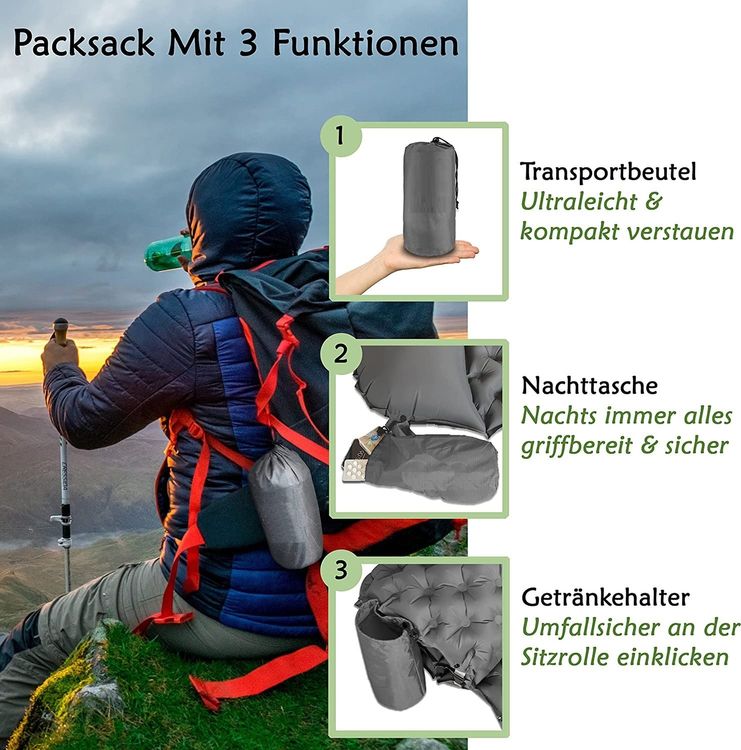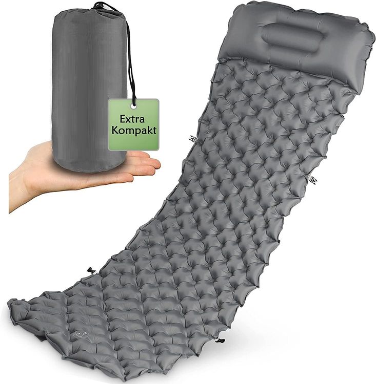 Perfekter Schlafkomfort für Outdoor-Abenteuer! Die BESTIF Isomatte ist super leicht (nur 470g) und wird super klein: zusammengerollt nur 8cm Durchmesser, 27cm hoch. Maße aufgeblasen: 190x56x5,5cm - also richtig bequem! Mit integriertem Kissen für Kopf und Nacken - kein extra Kissen nötig. Aus wasserabweizendem 40D Nylon mit TPU-Beschichtung - hält auch bei feuchtem Wetter trocken. Einfach aufblasen (ohne extra Pumpe) und los geht's! Perfekt für Camping, Wandern, Trekking oder als Gästebett. Passt in jeden Rucksack - kaum Platz weg. Die Luftkammern passen sich super an den Körper an für erholsamen Schlaf. Robuster als man denkt - hält auch rauem Untergrund stand. Mit praktischer Tragetasche in Camouflage-Design. Ob Festival, Bergtour oder spontane Übernachtung - mit dieser Matte schläfst du immer bequem!
