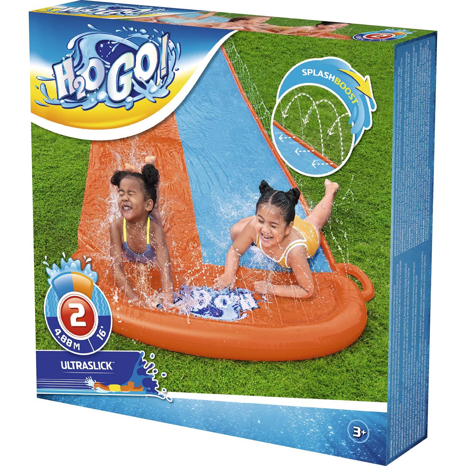 Spaß pur für den Sommer! Diese riesige 480 cm lange Wasserrutsche bringt Abkühlung in deinen Garten. Einfach aufblasen, Wasserschlauch anschließen und schon geht der Rutschspaß los! Mit weichen Crash-Kissen für sichere Landungen. Aus robustem PVC für langanhaltenden Spaß. Perfekt für Kindergeburtstage, Familienfeste oder einfach so an heißen Tagen. Die Rutsche lässt sich schnell aufbauen und nach Gebrauch platzsparend verstauen. Stundenlanger Spielspaß garantiert - lass deine Kinder zu echten Rutsch-Champions werden! Hol dir den Sommer ins eigene Garten - so macht Wasserspaß richtig Laune!