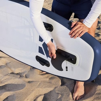 Ready for adventure? Dieses Home Deluxe Stand Up Paddle Board ist dein Ticket zu unvergesslichen Stunden auf dem Wasser! Erhältlich in drei Größen: S (305x81x12cm), M (320x81x12cm) und L (366x81x12cm) - perfekt abgestimmt auf deine Größe und Erfahrung. Das komplette Set enthält alles, was du brauchst: SUP-Board, Paddel, Doppelaktion-Pumpe, Tragetasche, Reparatur-Set und die Finnen. Mit hochwertiger Single Layer Drop Stitch Technologie ist das Board extrem stabil und belastbar. Die rutschfeste Oberfläche gibt dir sicheren Halt, das 3-Finnen-System sorgt für beste Spurtreue. Das elastische Gepäckband bietet Stauraum für dein Equipment. Schnell aufgebaut, leicht zu transportieren - ob auf dem See, am Meer oder auf dem Fluss. Perfekt für Einsteiger und Fortgeschrittene, die Freiheit und Spaß auf dem Wasser lieben!