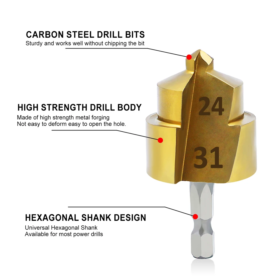 Handwerker, aufgepasst! Dieses PPR Rohr-Bohrer Set ist einfach genial für alle Wasserinstallationen. Mit drei Größen: 15-19mm, 18-24mm und 24-31mm - passt für 1/2 Zoll, 3/4 Zoll und 1 Zoll Rohre. Aus hochwertigem legiertem Stahl, extra gehärtet und absolut bruchfest. Die zweischneidige Bauweise macht's besonders effizient - bohrt schnell und sauber. Mit 6,35mm Sechskant für stabilen Halt in der Maschine. Das Schloss-Design verhindert lästiges Verrutschen während der Arbeit. Im Set: 3 Aufbohrer plus 7-teiliger Einfädler für elektrische Bohrmaschinen. Ob für Heimwerker oder Profi - damit kriegst du jede Wasserleitung hin! Einfach in die Bohrmaschine, ans Rohr und los geht's. Saubere Löcher, kein Frust - versprochen!