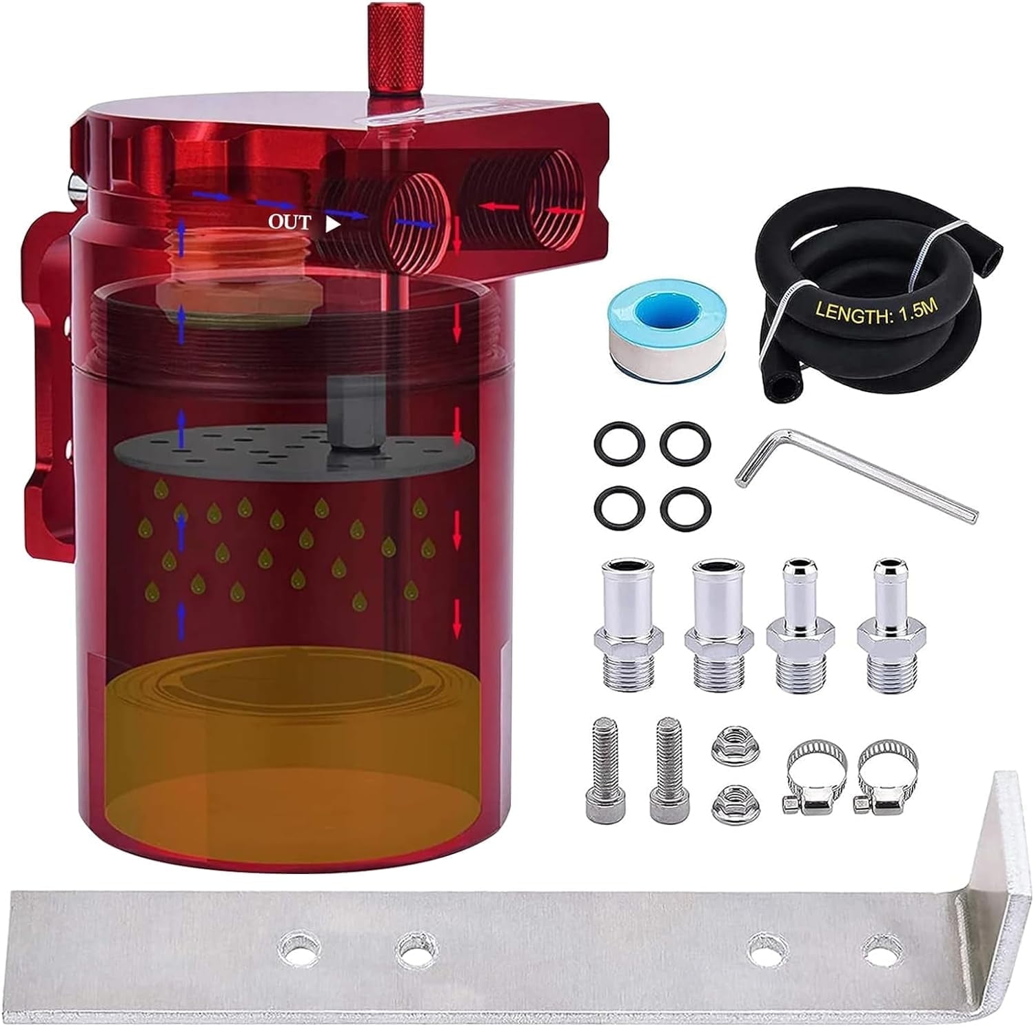 Gib deinem Motor mehr Power und Langlebigkeit! Dieser Ölauffangbehälter fängt Öl und Schlamm auf, bevor sie in den Motor gelangen. Kapazität 300ml, aus T-6061 Leichtaluminium für maximale Stärke bei geringem Gewicht. Mit interner Dual-Kammer-Schallwand für optimale Filterung. Abnehmbarer Boden zum einfachen Entleeren, abnehmbare Ablenkplatte für zusätzliche Filtermaterialien. Inklusive Luftfilter und Montagezubehör. Einlass- und Auslassgröße: 9mm und 15mm. Maße: 113x68mm. Kompatibel mit GM-Modellen. Verbessert die Motorleistung, spart Kraftstoff und verlängert die Lebensdauer deines Motors. Einfache Montage - schütze deine Investition und fahre mit besserer Performance. Ob für Tuning oder normale Wartung - dieser Behälter macht sich schnell bezahlt!