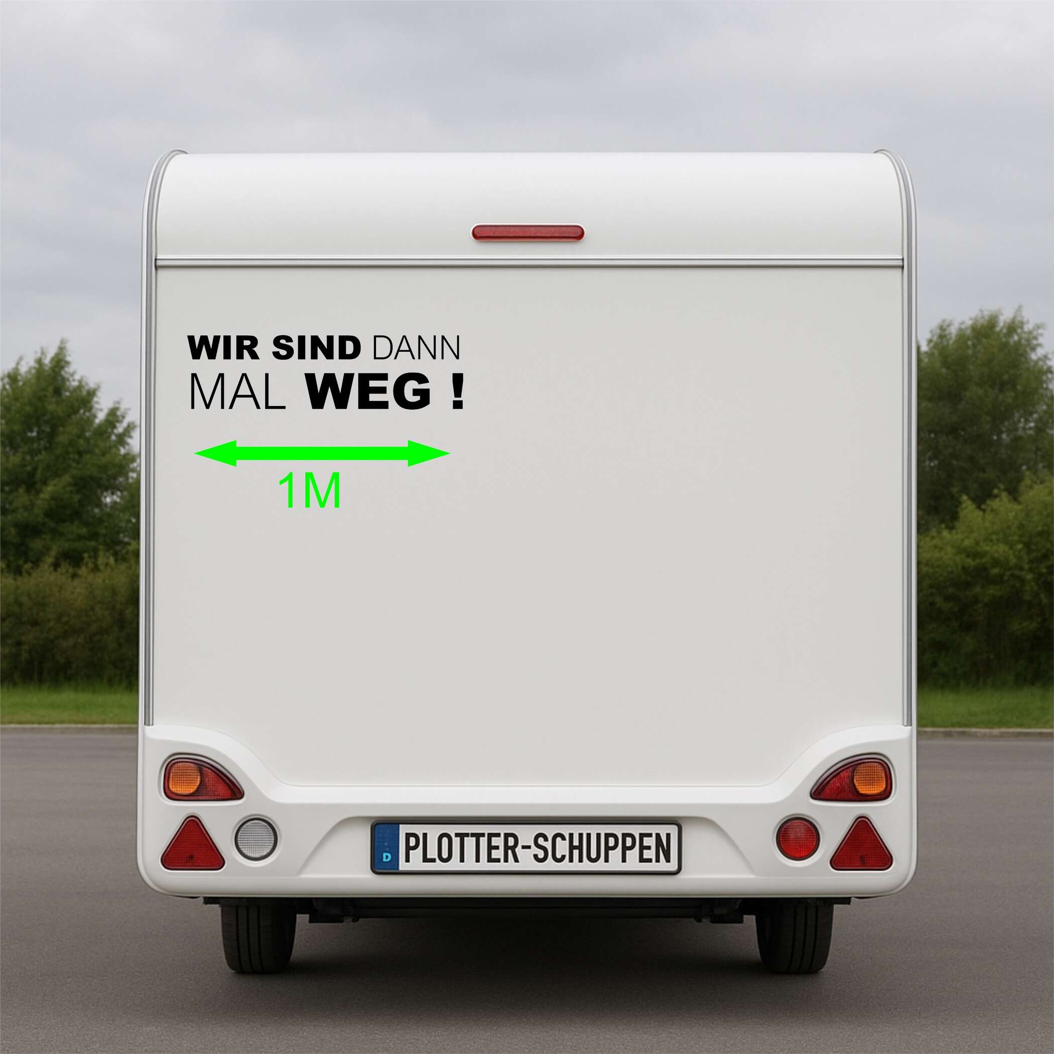 Dein Wohnmobil braucht mehr Persönlichkeit? Dieser coole \Wir sind dann mal Weg\ Aufkleber sagt genau das, was alle Camper denken! Mit satten 50cm Länge in edlem Schwarz ist er ein echter Hingucker. \\n\\nHergestellt aus hochwertiger Oracal 751c Folie - die hält was aus! Bis zu 7 Jahre wetter- und UV-beständig, egal ob bei Regen, Sonne oder Schnee. Dein Abenteuer-Statement bleibt also lange erhalten. \\n\\nDas Anbringen ist total easy: Selbstklebende Rückseite einfach abziehen, aufkleben - fertig! Und wenn du mal was Neues ausprobieren willst: Lässt sich rückstandslos entfernen, ohne lästige Klebereste. \\n\\nPasst super auf Wohnmobile, Wohnwagen und auch normale PKWs. Zeig der Welt, dass du ein echter Reiseprofi bist! \\n\\nDas Copyright-geschützte Design ist einzigartig und macht dein Fahrzeug unverwechselbar. Perfekt für alle, die ihren Freiheitsdrang ausdrücken wollen. \\n\\nOb Kurztrip oder Weltreise - mit diesem Aufkleber startest du stylisch in jedes Abenteuer. Also, worauf wartest du noch?