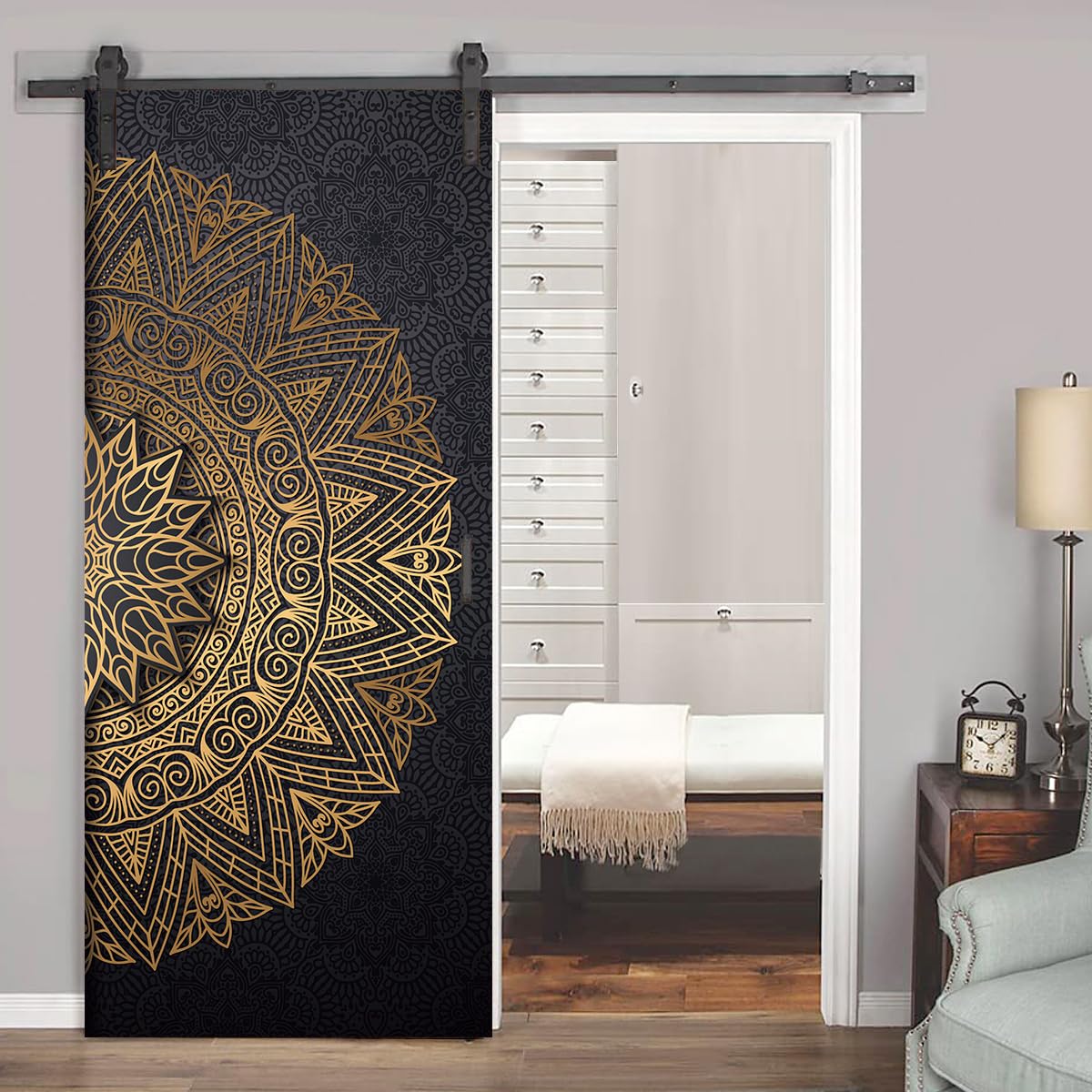 Verwandle deine Tür in ein Kunstwerk! Dieser wunderschöne Mandala-Blüten-Aufkleber in Schwarz-Gold bringt boho-flair in dein Zuhause. Einfach abziehen, aufkleben - und schon hast du einen echten Hingucker!🌺\n\nHergestellt aus hochwertigem Premium-Vinyl, das nicht nur wasserfest und ölresistent ist, sondern sich auch superleicht reinigen lässt. Und das Beste: Er ist abziehbar, ohne Rückstände zu hinterlassen!\n\nDrei Größen zur Auswahl:\n• 77x200 cm (2 Teile à 38,5x200 cm)\n• 90x200 cm (2 Teile à 45x200 cm) \n• 95x215 cm (2 Teile à 47,5x215 cm)\n\nEinfach die glatte, saubere Türoberfläche vorbereiten, die Schutzfolie abziehen und den Aufkleber Stück für Stück aufbringen. Luftblasen einfach herausstreichen - fertig ist die neue Wohlfühl-Atmosphäre!\n\nPerfekt für:\n• Schlafzimmer- und Wohnzimmertüren\n• Badezimmer (wegen der Wasserdichtheit!)\n• Küche\n• Kinderzimmer\n• Flurtüren\n\nIn nur wenigen Minuten verwandelst du eine langweilige Tür in ein stylisches Deko-Element. Deine Gäste werden staunen! Einfach, schnell und wirkungsvoll - so soll DIY sein!