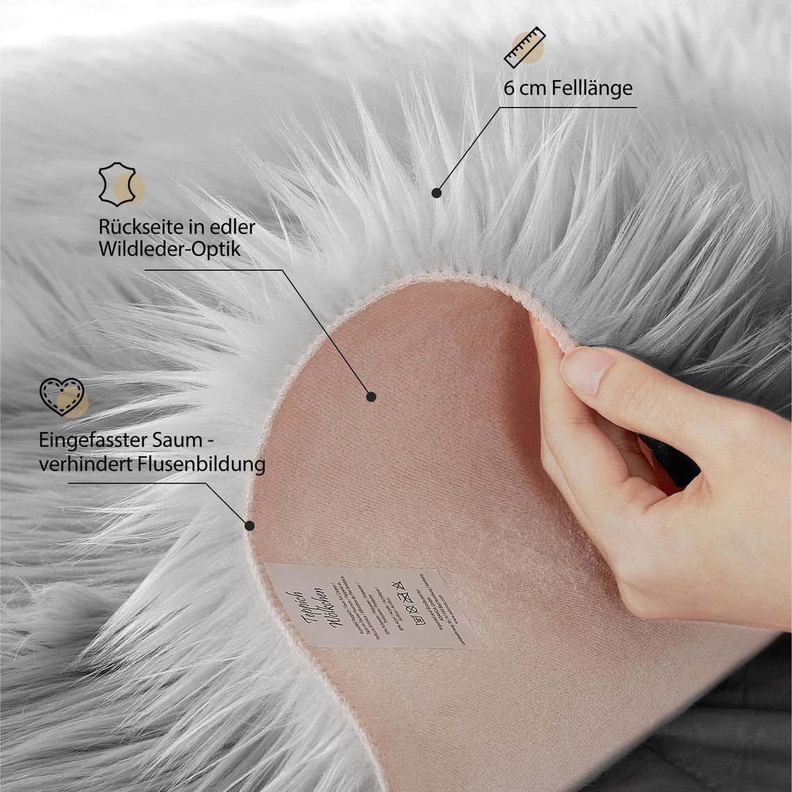 Verwöhne dich mit kuscheligem Komfort! Diese wunderschöne Kunstfell-Auflage in verschiedenen Größen (30cm, 45cm, 60cm, 90cm) verwandelt jeden Stuhl, Sessel oder Boden in eine gemütliche Wohlfühloase. Mit feinen Borsten von ca. 7cm Länge, die sich weich und griffig anfühlen. Die hohe Wolldichte imitiert echtes Schaffell perfekt und sorgt für angenehmen Sitzkomfort. Oberteil aus 100% Polyester mit langhaariger Hautoptik, Unterteil ebenfalls 100% Polyester. Vielseitig einsetzbar als Sitzkissen, Vorleger, Teppich oder Sofaüberwurf. Einfach in der Pflege: handwaschbar bei maximal 30°C, keine Bleiche, nicht im Trockner trocknen, nicht bügeln. Ein ideales Geschenk für Festivals, Geburtstage, Weihnachten oder einfach so für Freunde und Familie. In blau und anderen Farben erhältlich. Mach es dir gemütlich mit diesem bezaubernden Kunstfell - ob im Wohnzimmer, Schlafzimmer oder als dekoratives Element.