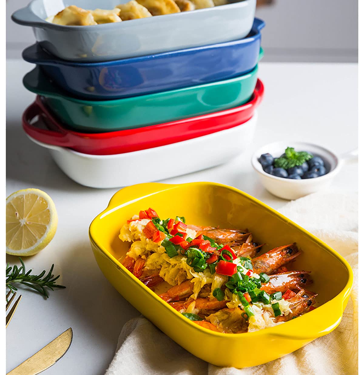 Perfekt für kleine Haushalte! Diese 2 rechteckigen Auflaufformen aus hochwertiger Keramik sind echte Allrounder in der Küche. Mit praktischen Griffen und den Maßen 26,4 cm Länge (mit Griff), 21 cm (ohne Griff), 14,5 cm Breite und 5 cm Höhe. Hergestellt aus glasiertem, lebensmittelechtem Porzellan - komplett BPA-frei und schadstoffrei. Die glatte Oberfläche ist flecken- und geruchsabweisend, super hygienisch und leicht zu reinigen. Ofenfest, mikrowellengeeignet und spülmaschinenfest - einfach praktisch! Ideal für Lasagne, Pasta-Aufläufe, Hähnchen, Fleischgerichte, Gemüse oder süße Desserts. Auch perfekt zum Aufwärmen von Resten oder als Serviergeschirr. Jede Form wiegt nur 0,51 kg - leicht zu handhaben. Sicher verpackt geliefert. Macht jedes Gericht zum Hingucker!