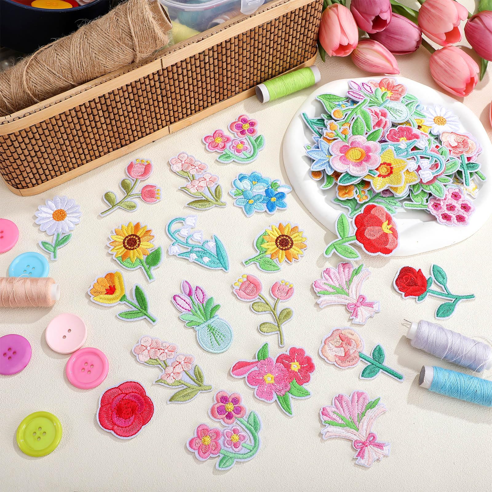 Verwandle deine Kleidung in einzigartige Kunstwerke! Mit diesem riesigen Set von 74 Blumen-Aufnähern kannst du Jeans, Jacken, Taschen und mehr total individuell gestalten. Enthalten sind 30 große und 44 kleine Blumen in den verschiedensten Farben und Designs - da ist für jeden Geschmack etwas dabei! Die Anwendung ist super einfach: Einfach mit dem Bügeleisen aufbügeln und schon halten die Patches fest auf Baumwolle, Denim und anderen bügelfreundlichen Stoffen. Perfekt nicht nur zum Dekorieren, sondern auch um kleine Löcher oder abgenutzte Stellen zu reparieren. Die hochwertige Verarbeitung garantiert, dass die Aufnäher waschmaschinenfest sind und auch nach häufigem Waschen nicht abgehen. Ob auf Rucksäcken, Hüten, Kissen oder Schals - deiner Kreativität sind keine Grenzen gesetzt! Toll für DIY-Projekte, als Geschenk für kreative Freunde oder einfach um deinem eigenen Style Ausdruck zu verleihen. Mach aus langweiliger Kleidung echte Hingucker - ganz ohne Nähen!