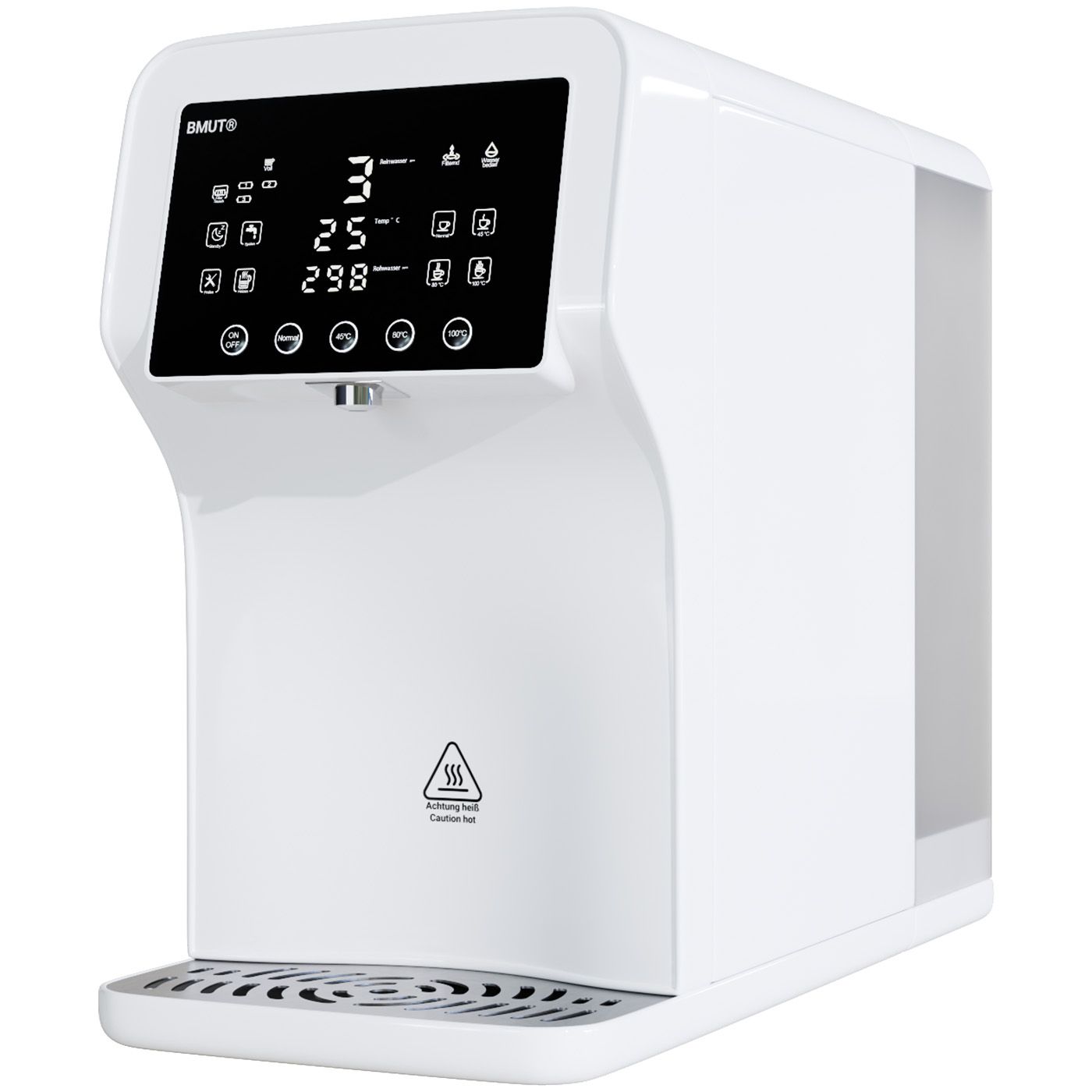 Trinkwasser-Revolution für deine Küche! Die Jimmy R9 Osmoseanlage ist der absolute Game-Changer für perfektes Trinkwasser. Mit 7 Filterstufen inklusive UV-Technologie entfernt sie 99,99% der Schadstoffe wie Bakterien, Schwermetalle und Chlor. Das geniale 3:1 Rein-/Abwasser-Verhältnis spart dabei jede Menge Wasser. Aber das absolute Highlight: Der integrierte Heißwasserspender! In nur 3 Sekunden hast du heißes Wasser von 45°C bis 98°C - perfekt für Tee, Kaffee oder Instant-Gerichte. Die Bedienung ist super einfach über das Touch-Display, wo du auch TDS-Werte und Filterstatus ablesen kannst. Mit nur 26cm Tiefe passt das Gerät auf jede Arbeitsplatte und benötigt keine aufwändige Installation. Einfach einstecken und sofort reines Wasser genießen! Die beiden Tritan-Wassertanks lassen sich easy entnehmen und im Kühlschrank lagern. Filterwechsel? Total einfach mit Drehmechanismus - ohne Werkzeug in Sekunden erledigt. Für Küche, Büro oder sogar im Wohnmobil - diese Osmoseanlage macht überall perfektes Wasser!