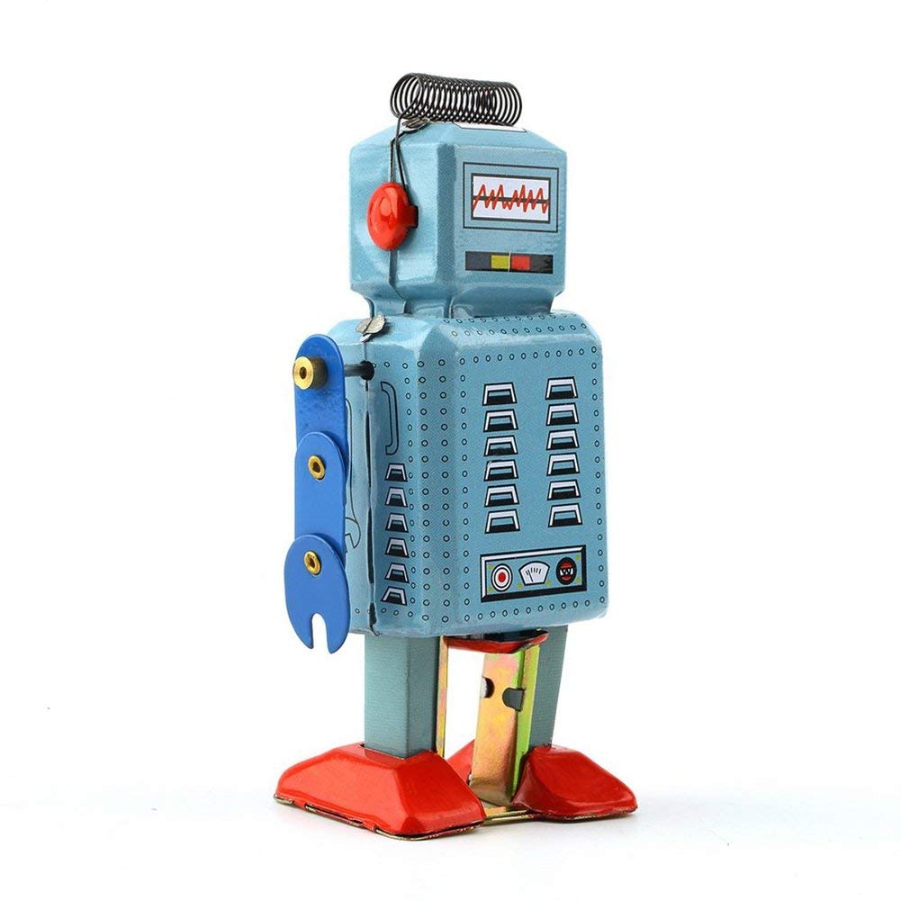 Retro-Charm pur! Dieser niedliche Aufziehroboter bringt Nostalgie in dein Zuhause. Aus robustem Weißblech gefertigt - hält auch mal einen Sturz aus. Einfach aufziehen (1-3 Umdrehungen im Uhrzeigersinn) - und schon watschelt er los. Völlig mechanisch - keine Batterien needed, nur deine Handkraft. Jedes Stück handgefertigt - kleine Unebenheiten machen ihn einzigartig. Perfekt als Deko auf dem Schreibtisch, Regal oder Sideboard. Auch super als Requisite für Fotoshootings oder Stop-Motion-Filme. Ein richtiges Sammlerstück - für alle, die Retro-Spielzeug lieben. Tolles Geschenk für Geburtstage, Weihnachten oder einfach so. Nur ca. 107g leicht - super zum Mitnehmen oder Verschenken. Macht einfach gute Laune - wenn er so vor sich hin läuft. Ein Stück Zeitgeschichte - so haben Roboter vor 50 Jahren ausgesehen. Einfach in der Handhabung - auch für Kinder geeignet (unter Aufsicht). Aber Achtung: Nicht zu fest aufziehen und nie gegen den Uhrzeigersinn! Dein neuer kleiner Freund - der immer für eine Überraschung gut ist.