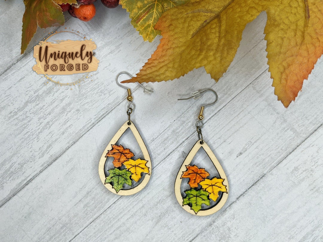 • Herbstblatt Ohrringe Aus Acryl - Palmen Design Mit Glitzer