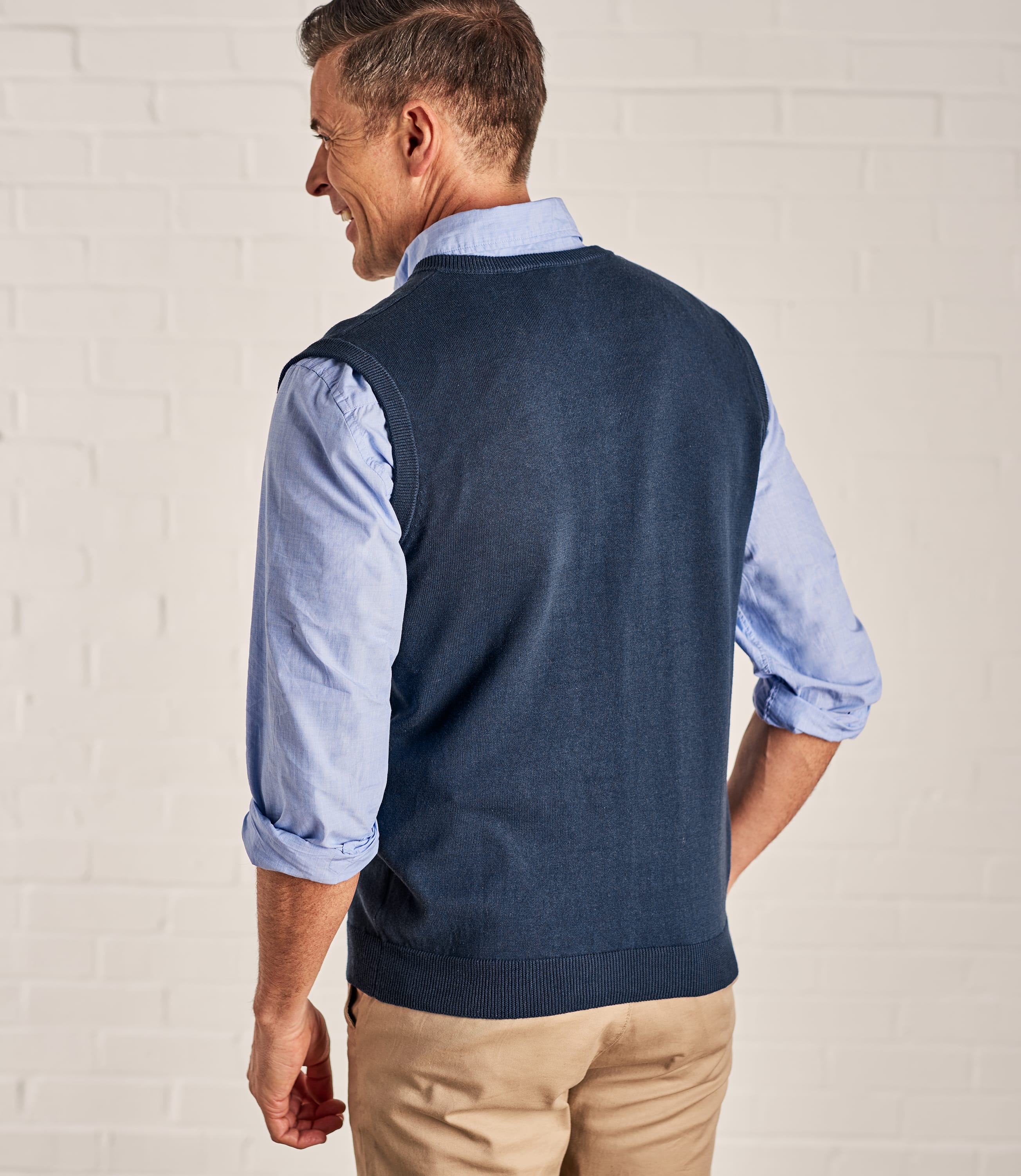 Stylischer Begleiter für kühlere Tage: Der bugatti Pullunder aus weichem Baumwolle-Kaschmir-Mix. Mit dezentem V-Ausschnitt und regular Passform. Perfekt zum Unterhemd oder über einem Hemd - schick im Büro oder casual in der Freizeit. Der Layer-Look sitzt einfach immer! Aus der HW25 Kollektion 2025.