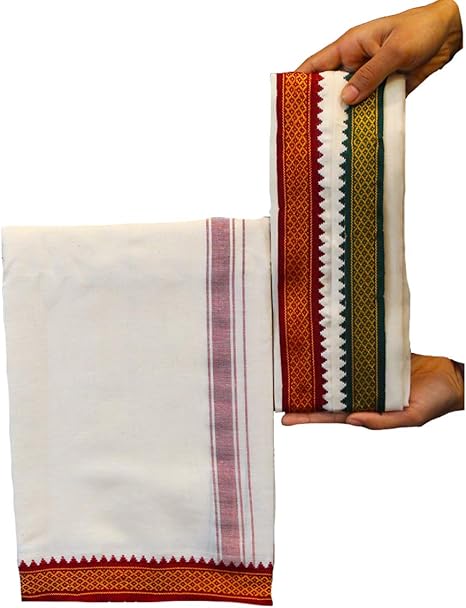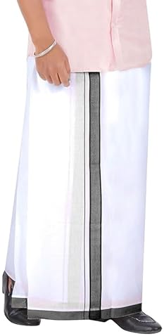 Tradition trifft Style! Dieser Baumwoll-Dhoti von Stylesindia ist perfekt für Feste wie Diwali, Onam oder Hochzeiten. Aus weicher, atmungsaktiver Baumwolle - super bequem auch bei längerem Tragen. Mit eleganter goldener oder silberner Bordüre für den besonderen Look. Länge ca. 2 Meter, ideal zum klassischen Wickeln. Kombinierbar mit Kurta oder Hemd für den vollendeten ethnischen Style. Ob Festtagsfeier oder täglicher Gebrauch - mit diesem Dhoti machst du immer eine gute Figur. Ein Must-Have für jeden modebewussten Mann, der seine Wurzeln liebt!