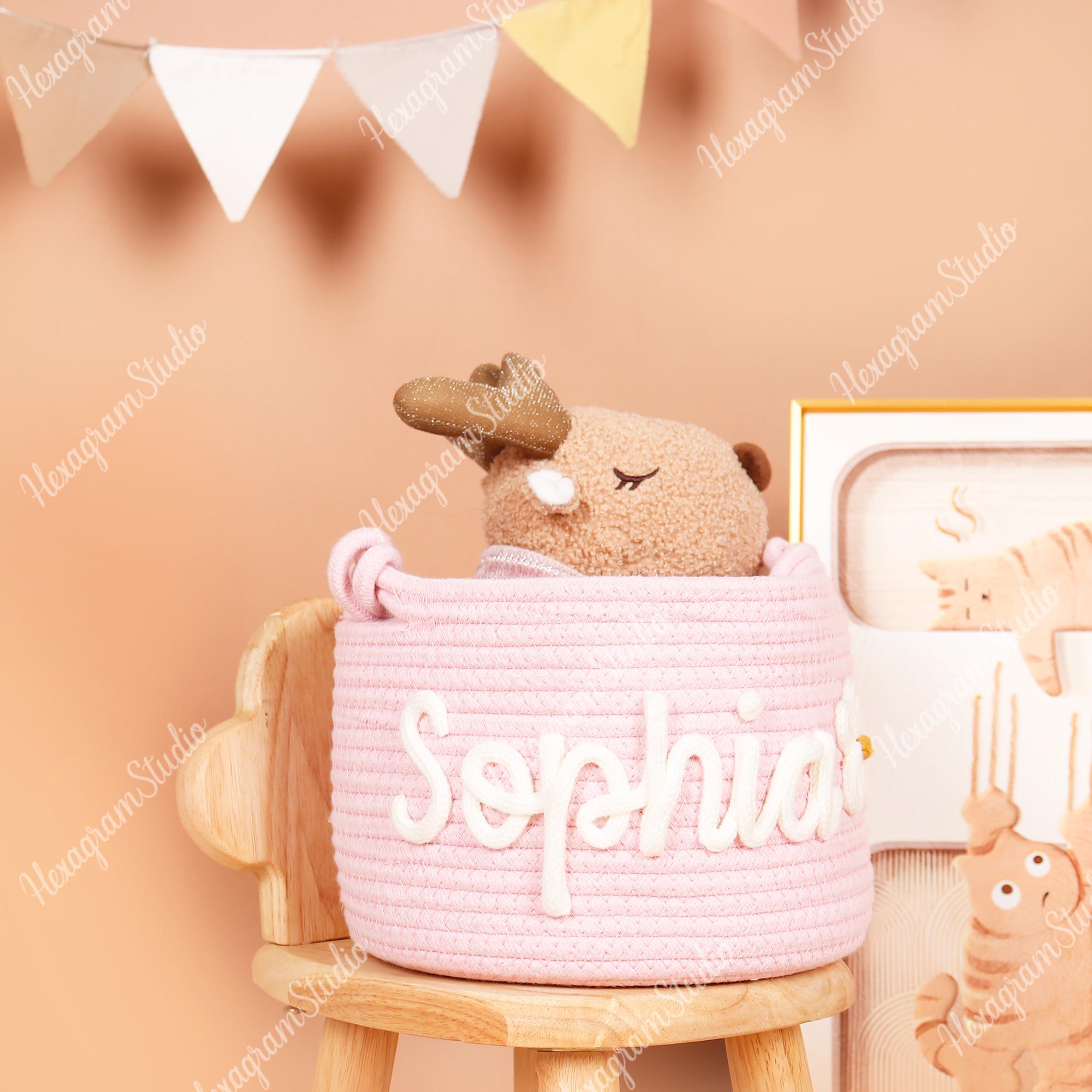 • Personalisierter Baby Korb Aus Baumwollseil - Spielzeug Aufbewahrung 19x13x35cm