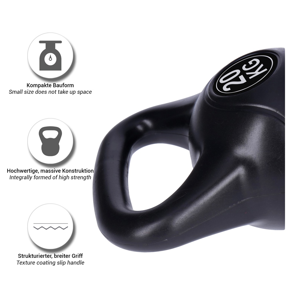 So, ab jetzt wird trainiert! Diese 20kg Kettlebell ist perfekt für dein Home-Gym. Aus Beton mit robuster Kunststoffummantelung - die beschädigt keine Böden und liegt gut in der Hand. Maße: 25x25x36cm. Das Gewicht ist klar eingeprägt, also keine Überraschungen. Perfekt für Schwungübungen, Kreuzheben oder Turkish Get-Ups. Die runde Form macht die Übungen besonders effektiv. Ob für Kraftaufbau, Ausdauer oder Fettverbrennung - mit dieser Kugelhantel bringst du Abwechslung in dein Training. Und der Preis ist unschlagbar für die Qualität! Auch für Fitness-Einsteiger geeignet - einfach langsam steigern. Stell sie in dein Wohnzimmer, Garage oder Garten - und leg los! Aber Vorsicht: Immer auf richtige Technik achten, sonst gibt's Muskelkater!