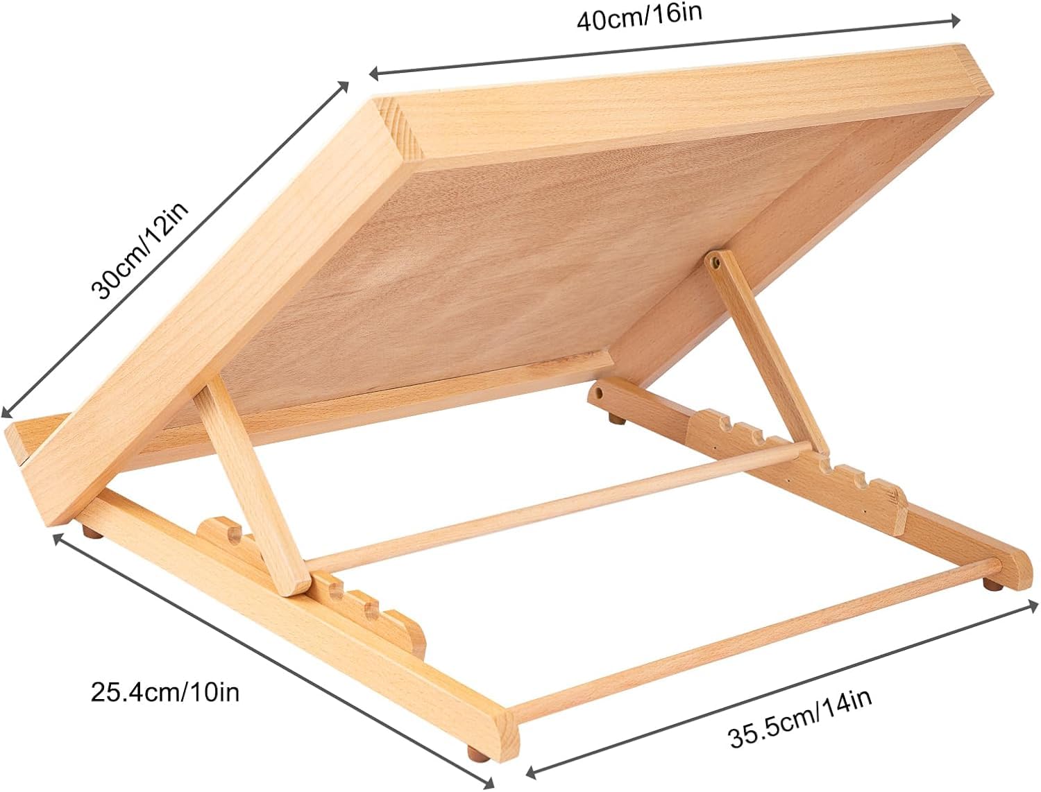 Die perfekte Staffelei für alle Künstler - ob Anfänger oder Profi! Aus massivem europäischen Buchenholz gefertigt, ist diese Tischstaffelei nicht nur super stabil, sondern sieht auch noch richtig schön aus. Mit 5 verstellbaren Winkeln bis 80° findest du immer die perfekte Position zum Malen, Zeichnen oder für Präsentationen. Die Maße von 30x41 cm sind ideal für Leinwände, Zeichenblöcke oder Notenblätter. Die rutschfesten Gummifüße schützen deinen Tisch vor Kratzern und sorgen für bombenfesten Halt. Besonders praktisch: Sie ist faltbar und wiegt nur 1,5 kg - perfekt für unterwegs oder platzsparende Aufbewahrung. Die glatte Oberfläche eignet sich super für Aquarell, Acryl, Zeichnungen oder als stylischer Präsentationsständer im Homeoffice. Ein echtes Allround-Talent für Kreative! Einfach aufstellen, Winkel einstellen und loslegen mit deinem nächsten Kunstwerk.