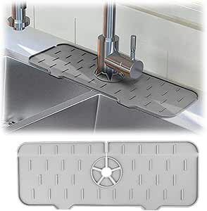 Schluss mit Pfützen in der Küche! Diese praktische U-förmige Matte aus Diatomit saugt Wasser im Nu auf und trocknet schnell. Passt um die meisten Wasserhähne mit 2,5\ Lochdurchmesser. Maße: 60x10 cm - genug Platz für Seife, Schwamm und mehr. Inklusive 8 Gummifüßen für bessere Belüftung und Anti-Rutsch-Wirkung. Mit Schleifwerkzeug - bei Verschmutzungen einfach abschleifen, sieht wieder aus wie neu. Hält länger als herkömmliche Matten und sieht dabei noch modern aus. Einfach unter den Wasserhahn legen und sich über trockene Arbeitsplatten freuen. Perfekt für Küche und Bad - endlich Ordnung und Sauberkeit um den Wasserhahn!