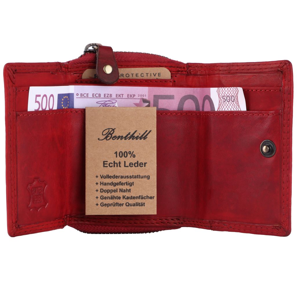 Wow, diese Benthill Geldbörse ist einfach der Hammer! Stell dir vor: Sie ist super kompakt (nur 10x11x1 cm), passt also in jede Handtasche oder Jackentasche, aber hat trotzdem Platz für alles, was du brauchst. Aus echtem Rindsleder - das spürst du sofort, wie weich und hochwertig sich das anfühlt! Und dieses tolle Vintage-Look... einfach klasse!