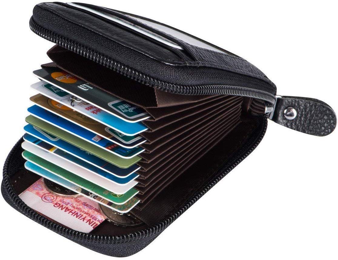 Schluss mit klobigen Geldbörsen! Dieses elegante Kreditkartenetui von SENDEFN aus echtem Rindsleder ist dein stylischer Begleiter für jeden Tag. Kompakt mit 12,9 x 8,5 cm passt es in jede Handtasche oder Jackentasche. Mit 13 praktischen Fächern: 9 für Kreditkarten, 4 mit Sichtfenster für Führerschein & Fotos, plus extra Fach für Scheine. Der RFID-Schutz mit Metallfolie schützt deine Karten vor unerwünschtem Auslesen - wichtig in heutigen Zeiten! Der Sonnenblumen-Druckknopf und die Vintage-Quasten geben dem Etui einen besonderen Charme. Das Akkordeon-Design macht alle Karten gut zugänglich. Perfekt für alle, die minimalistisch unterwegs sein wollen ohne auf wichtige Karten verzichten zu müssen. Wird in einer hübschen Geschenkbox geliefert - ideal für Geburtstage, Weihnachten oder einfach als Überraschung für die beste Freundin. Style und Sicherheit in einem - deine neue Lieblings-Geldbörse!