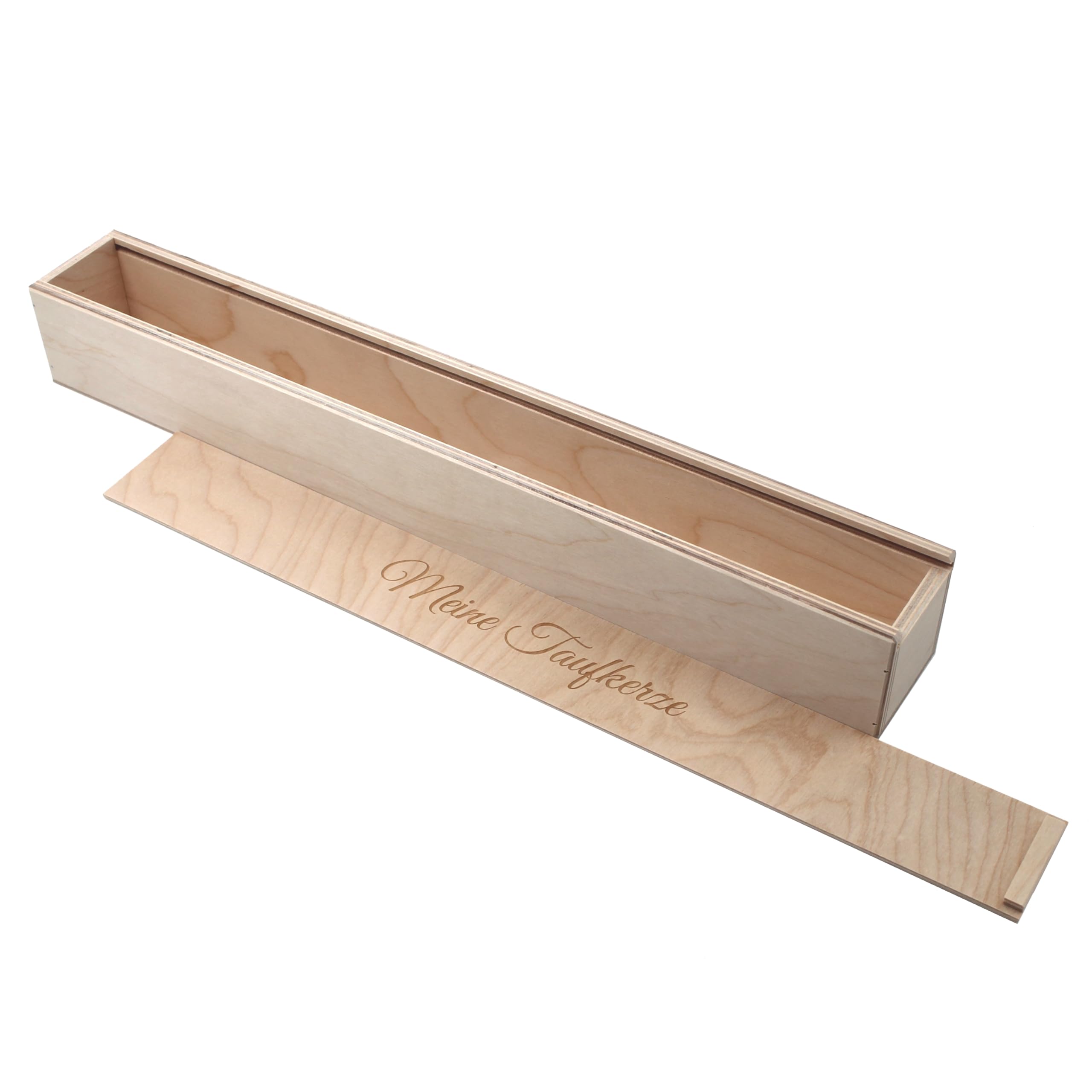Was für eine schöne Idee zur Taufe! Diese Holzbox aus Fichtenholz ist perfekt, um die Taufkerze sicher und stylisch aufzubewahren. Mit den Maßen 26x8,5x8,5 cm passt sie ideal für die meisten Standard-Taufkerzen. Der Schiebedeckel macht das Reinigen und Herausnehmen super easy, und die Kerze ist sicher vor Staub und Bruch geschützt. Das Besondere: Die Box kommt naturbelassen an - du kannst sie also ganz nach deinem Geschmack bemalen, gravieren oder mit Aufklebern verzieren! Hergestellt wird sie in Österreich von einem Familienbetrieb mit traditionellem Handwerk - da steckt richtig Liebe zum Detail drin. Ob für Jungen oder Mädchen, als Geschenk für die Paten oder zur eigenen Aufbewahrung - diese Box wird zu einem bleibenden Erinnerungsstück an den besonderen Tag. Übrigens: Sie eignet sich nicht nur für Taufkerzen, sondern auch für Fotos, den Patenbrief oder andere kleine Schätze. Einfach klasse Qualität und nachhaltig obendrauf!