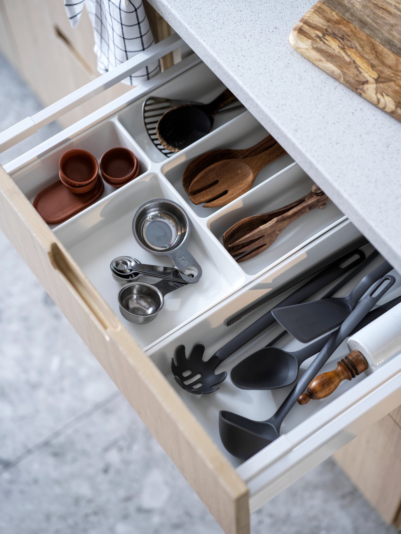 Boah, diese Filzmatte von IKEA ist so eine simple aber geniale Idee! Einfach in die Küchenschublade legen und schon ist der Boden vor Kratzern geschützt! Und das Beste: Sie dämpft das lästige Klappern und Klirren, wenn du Geschirr reinlegst - kein Nerv-Geklapper mehr! Aus 100% Polyester, also super langlebig und pflegeleicht! Mit 50x48 cm ist sie für die meisten Standard-Schubladen perfekt, und wenn nicht, schneidest du sie einfach mit ner Schere zu! Die graue Farbe ist dezent und passt in jede Küche! Einfach reinlegen - keine Montage nötig! Schützt nicht nur deine Schublade, sondern sieht auch noch ordentlich aus! Perfekt für Besteck, Kochutensilien oder was du sonst so in der Küche aufbewahrst! Einfach ein no-brainer für jeden, der seine Küche ein bisschen aufwerten will!