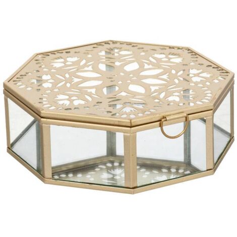 Wow, diese Schmuckschatulle ist einfach traumhaft! Das sechseckige Design aus Glas und Messing sieht so edel aus - perfekt für deine wertvollsten Stücke. Mit 8x7x4,5cm ist sie kompakt genug für unterwegs, aber groß genug für Ringe, Armbänder und Ohrringe. Durch das klare Glas siehst du deinen Schmuck von allen Seiten. Super als Aufbewahrung für den Schminktisch oder als besondere Geschenkbox für Verlobungen, Hochzeiten oder Jubiläen. Die antike Goldoptik verleiht jedem Anlass eine besondere Note. Ein wirklich elegantes Geschenk für Liebhaber schöner Dinge!