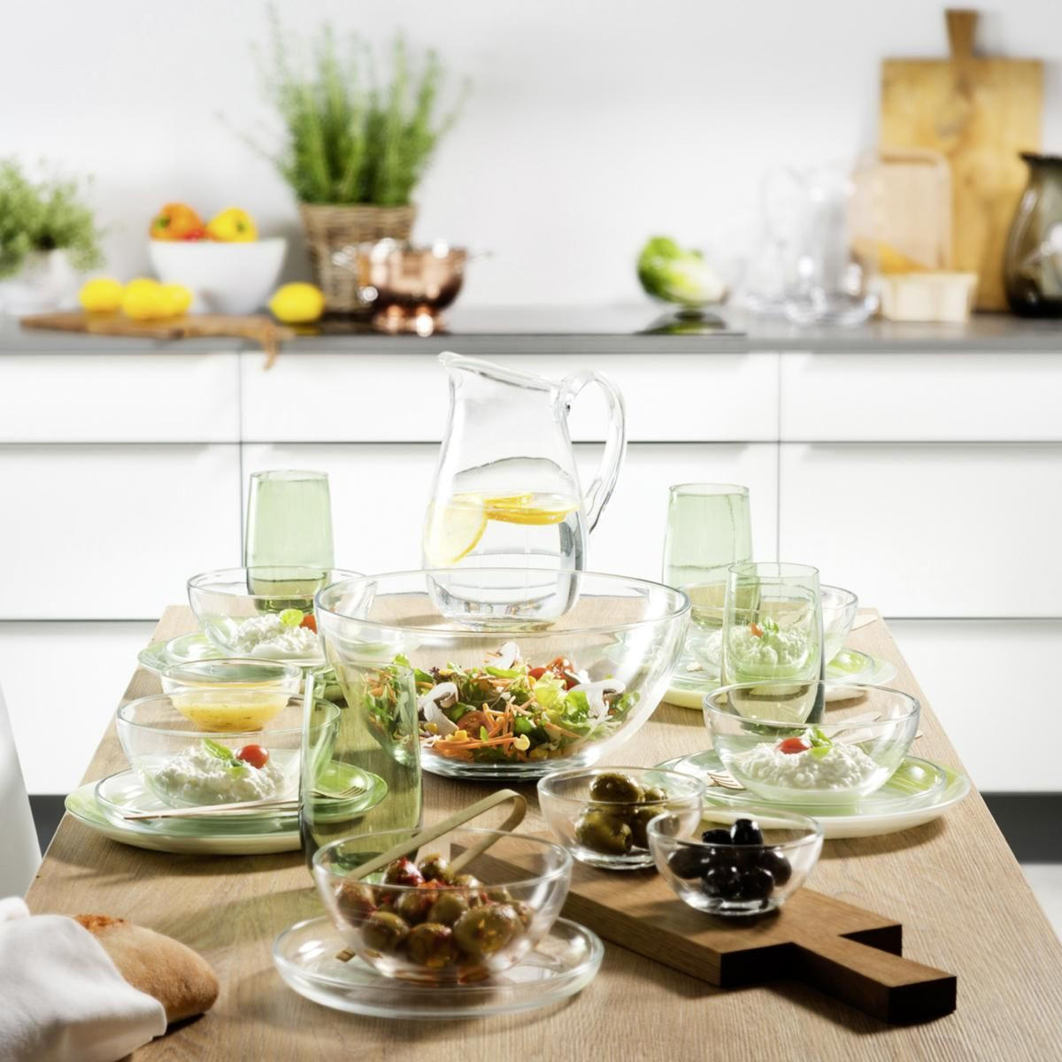Serviere deine Suppen und Eintöpfe in stylischem Design mit diesen Excelsa Diamond Suppentellern! Aus hochwertigem Glas gefertigt, überzeugen sie nicht nur durch ihre elegante silber-schwarze Optik, sondern auch durch ihre praktischen Eigenschaften. Mit 20 cm Durchmesser und 4,5 cm Höhe bieten sie genug Platz für üppige Portionen, bleiben dabei aber handlich und stapelbar. Der flache Boden sorgt für sicheren Stand auf dem Tisch, und die Spülmaschinenfestigkeit macht die Reinigung zum Kinderspiel. Allerdings Vorsicht: Nicht mikrowellengeeignet und nicht widerstandsfähig bei niedrigen Temperaturen - also besser nicht vom Eisfach direkt in heiße Flüssigkeit stellen. Perfekt für den täglichen Gebrauch oder besondere Anlässe, wenn du deinen Gästen etwas Besonderes bieten willst. Die Diamond-Serie von Excelsa ist bekannt für ihre Langlebigkeit und zeitlose Eleganz - eine lohnende Investition für deine Küche. Egal ob für die Familienmahlzeit oder das Dinner mit Freunden - diese Teller machen immer eine gute Figur und sind ein echter Hingucker auf jedem gedeckten Tisch.