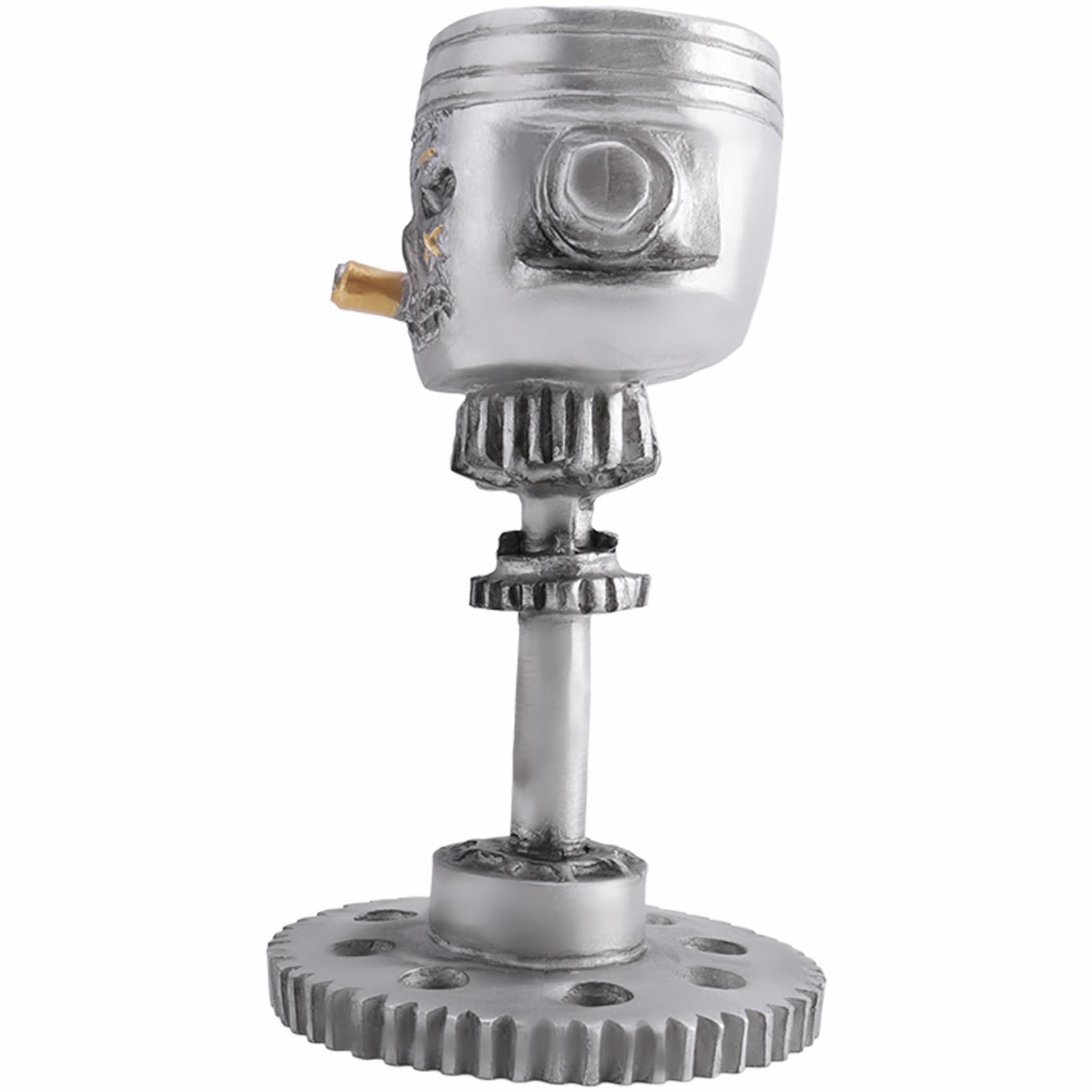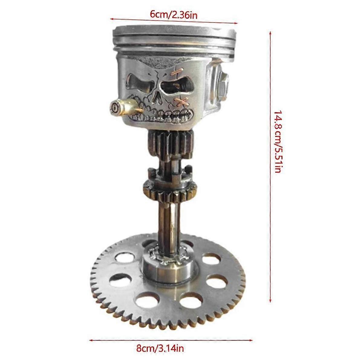 Echt krasses Teil für echte Kerle! Diese Kolben-Schädel Skulptur sieht aus wie echtes Metall, ist aber aus robustem Harz. Mit 14cm Höhe perfekt für den Schreibtisch, Regal oder Wohnzimmer. Die Details sind hammer - jeder Knochen, jede Schraube sitzt. Sieht aus wie aus einem alten Motor gebaut. Super als Geschenk für Mechaniker, Biker oder alle, die was Besonderes mögen. Macht jeden Raum sofort interessanter. In drei Größen erhältlich. Ein echter Hingucker der garantiert Gespräche auslöst! Einfach hinstellen und bewundern. Passt super zu industriellem oder modernem Einrichtungsstil.