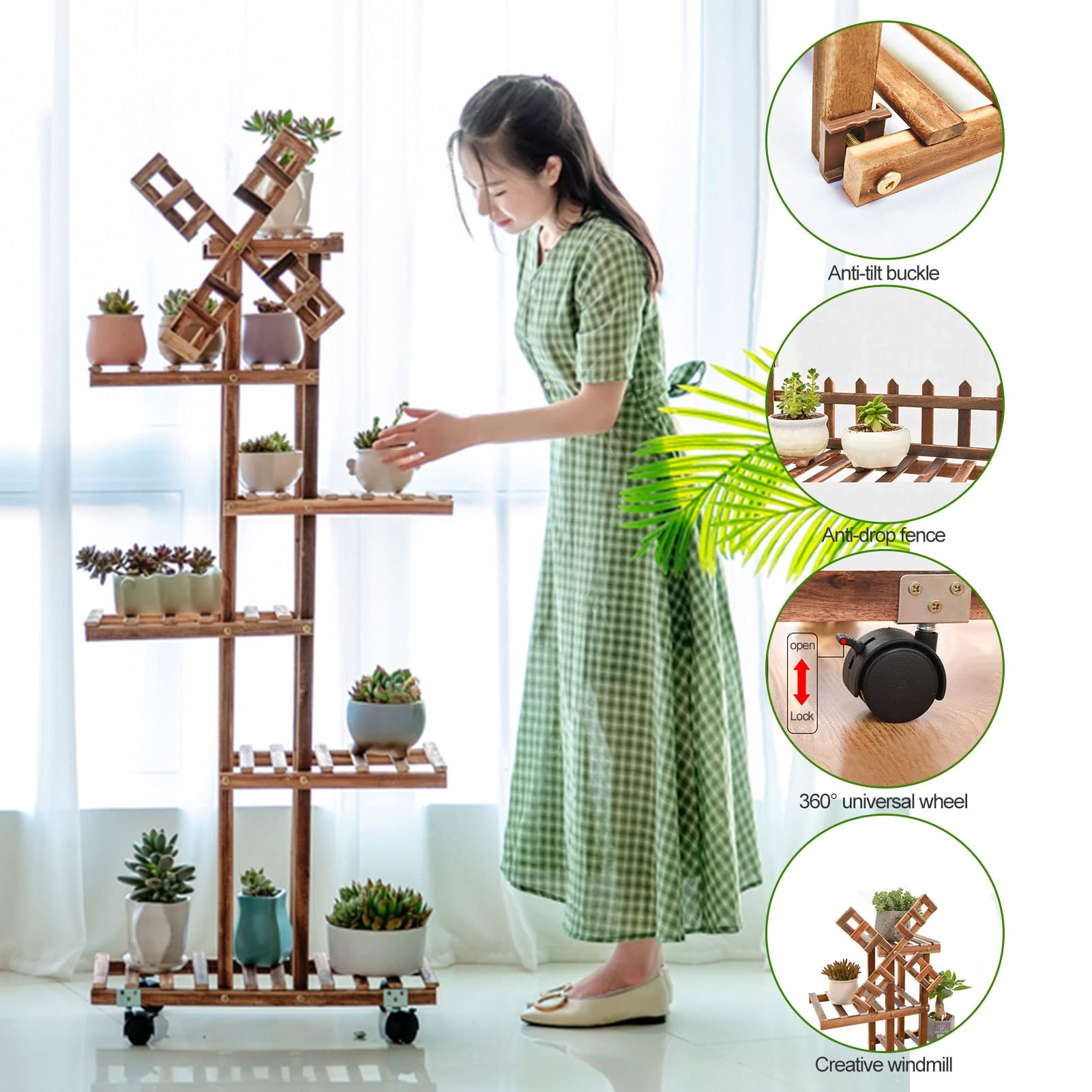 HONMEET Blumenständer Aus Holz - 2-stöckiges Pflanzenregal Für Zuhause
