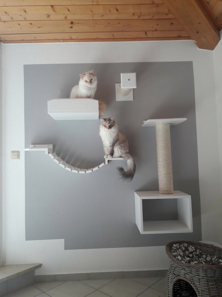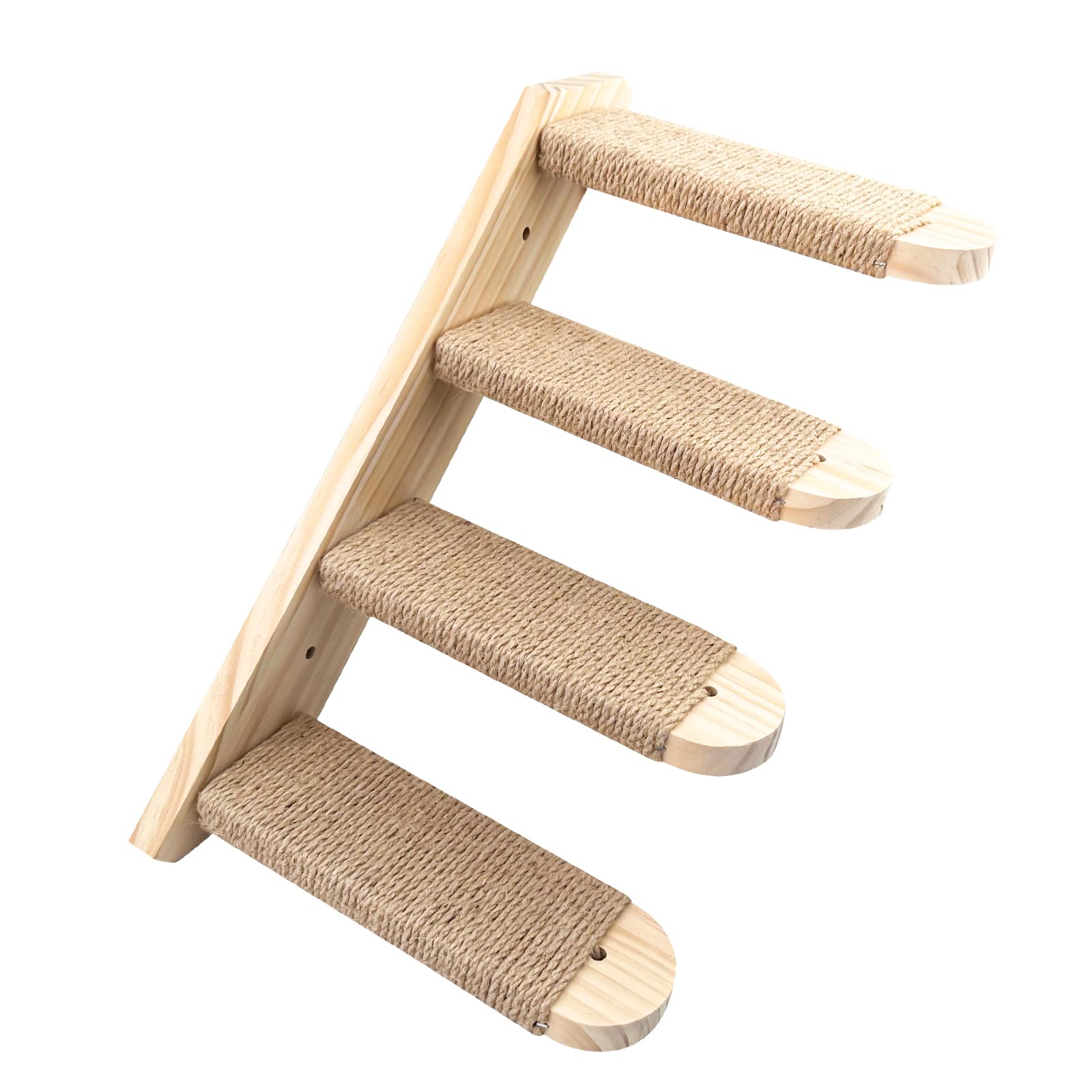 Deine Katze klettert gerne? Dann ist diese Kletterwand perfekt! Mit 4 Stufen aus natürlicher Eiche, jede Stufe 22x7x1,5cm groß. Die gesamte Leiter ist 40cm lang. Mit Juteseil umwickelt - ideal zum Kratzen und Klettern. Wandmontage spart Platz und gibt deiner Katze neue Bewegungsmöglichkeiten. Starke Tragfähigkeit für sicheres Spielen. Befriedigt den natürlichen Kletterinstinkt und hilft beim Stressabbau. Passt in jeden Raum - ob Wohnzimmer, Flur oder Balkon. Einfach montieren und deine Katze wird es lieben! Aus natürlichen Materialien, harmonisch in jede Einrichtung.