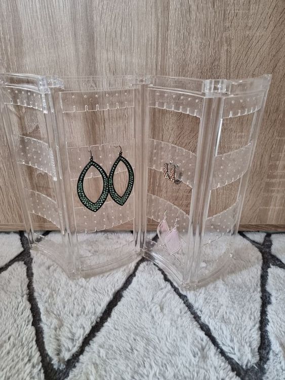 Endlich Ordnung im Schmuckkästchen! Dieser wunderschöne Ohrring-Organizer aus Holz mit natürlicher Maserung bringt System in deine Ohrring-Sammlung. Mit 4 Etagen, 60 Schlitzen für Ohrhänger und 56 Löchern für Ohrstecker bietet er Platz für bis zu 58 Ohrring-Paare. Die Maße von 360mm Länge, 78mm Breite und 370mm Höhe machen ihn platzsparend, aber dennoch geräumig. Einfach zu montieren und zu demontieren - perfekt für die Heimdekoration, aber auch ideal für Juweliergeschäfte und Messen. Du hast alle deine Ohrringe immer im Blick und sparst Zeit beim Suchen. Das natürliche Holzdesign fügt sich harmonisch in jede Einrichtung ein und wird zum echten Hingucker in deinem Zimmer. Nie wieder Chaos in der Schmuckschublade!
