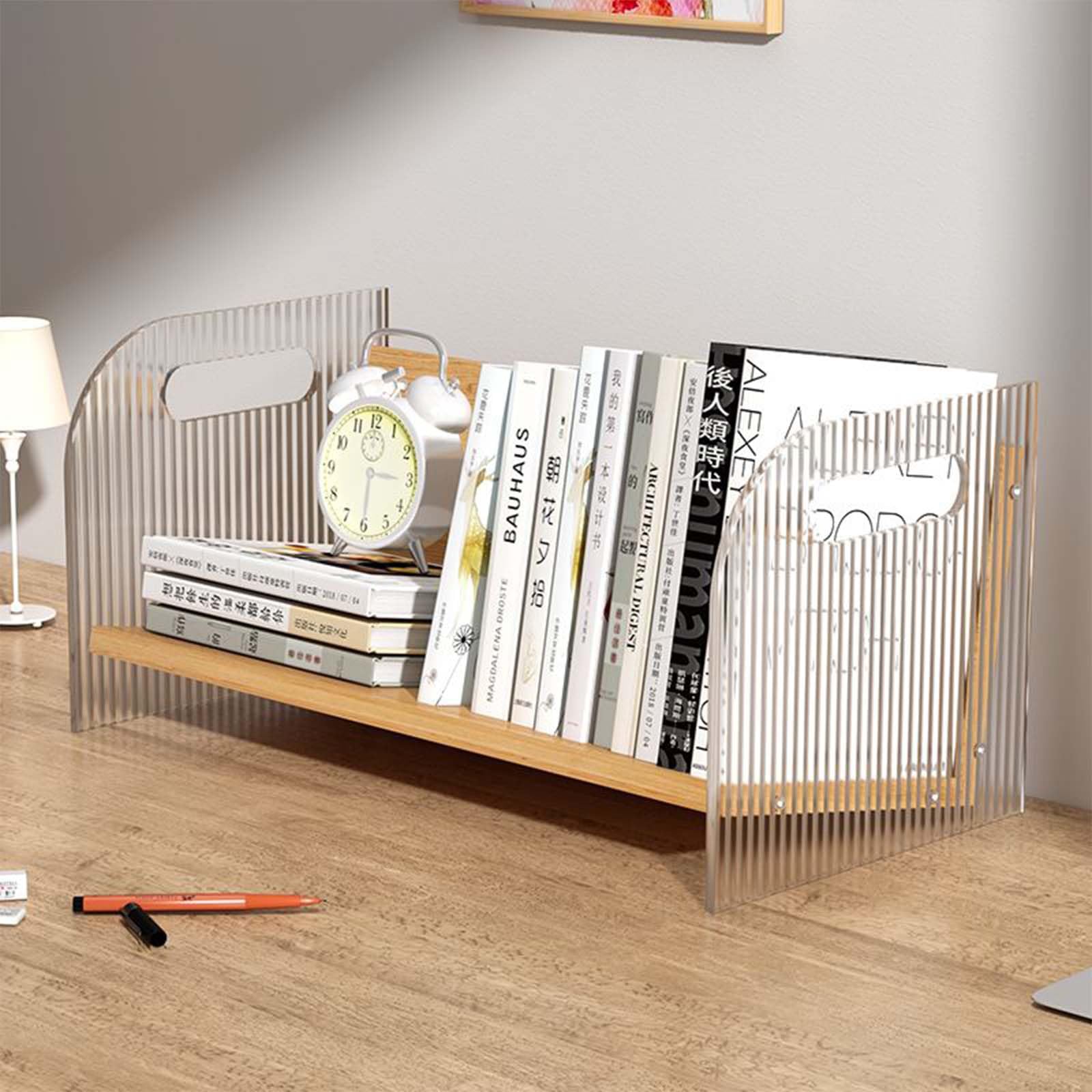 Endlich Ordnung auf dem Schreibtisch! Dieses hübsche Bücherregal aus Holz hilft dir, deine Bücher und Zeitschriften perfekt zu organisieren. Mit mehreren Fächern findest du alles sofort und hast mehr Platz zum Arbeiten. Das Besondere: Du baust es selbst zusammen - einfach das männliche Board in das weibliche Board stecken und mit den Ringen fixieren. So hast du in wenigen Minuten dein persönliches Regal fertig! Erhältlich in warmweiß oder hellrosa, es sieht einfach niedlich aus. Mit den Maßen 30x17x17 cm passt es perfekt auf jeden Schreibtisch. Die glatte Oberfläche lässt sich super einfach mit einem feuchten Tuch reinigen. Aus robustem Holz gefertigt, hält dieses Regal lange und ist umweltfreundlich. Ideal für Studenten, Kinder oder jeden, der sein Zuhause oder Büro etwas ordentlicher gestalten möchte. Einfach aufbauen und sich über mehr Ordnung freuen!