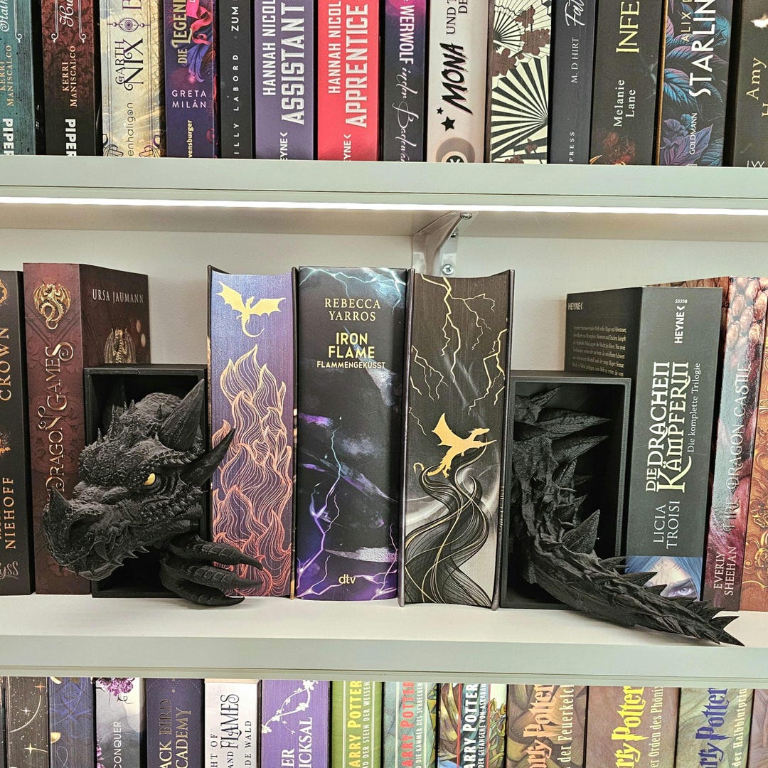 Die schwarz-gelbe Drachen-Form sieht mega aus zwischen deinen Büchern. Bringt richtig Fantasy-Flair in dein Regal! Aber die Dinger sind nicht nur Deko - sie halten deine Bücher auch stabil und verhindern das Umkippen. Praktisch und schön zugleich.
