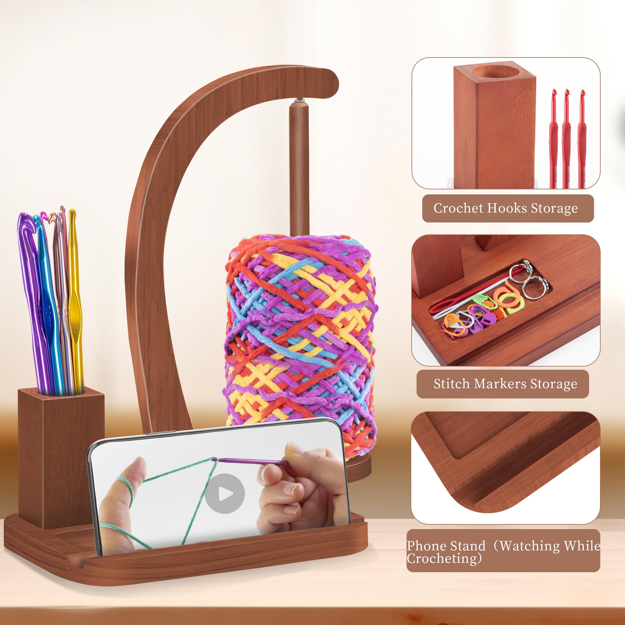 Strickst du auch so gerne und ärgerst dich über die verhedderten Wollknäuel? Dieser Wollabwickler aus Holz ist die Lösung! Mit seinen 19x19x29 cm ist er perfekt für alle Handarbeitsprojekte. Das natürliche Holz sieht nicht nur rustikal-elegant aus, sondern ist auch super stabil. Der Hauptschaft ist fein poliert, damit das Garn richtig gut abläuft. Das geniale Feature: Eine integrierte Handyhalterung! So kannst du ganz easy Strickanleitungen anschauen während du arbeitest. Der Wollabwickler kommt komplett mit Regal, Basis, Lagerbehälter und allen notwendigen Schrauben - sogar ein Schraubendreher ist dabei. Du kannst ihn aber nicht nur zum Stricken verwenden, sondern auch zum Ordnen von Angelschnüren oder anderen Seilen. Ein richtig vielseitiges Teil also! Und als Geschenk ist er perfekt für alle Strickbegeisterten - ob zum Geburtstag, Weihnachten oder einfach so. Die natürliche Holzmaserung macht jedes Stück einzigartig und verleiht deinem Wohnzimmer einen gemütlichen Touch.