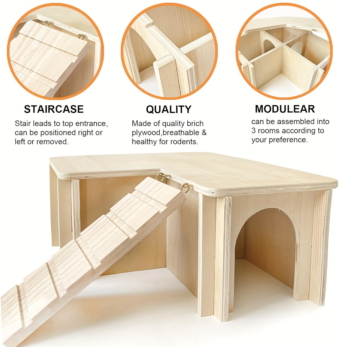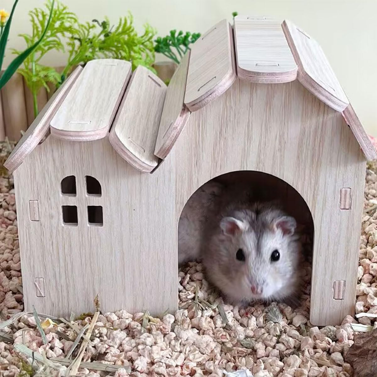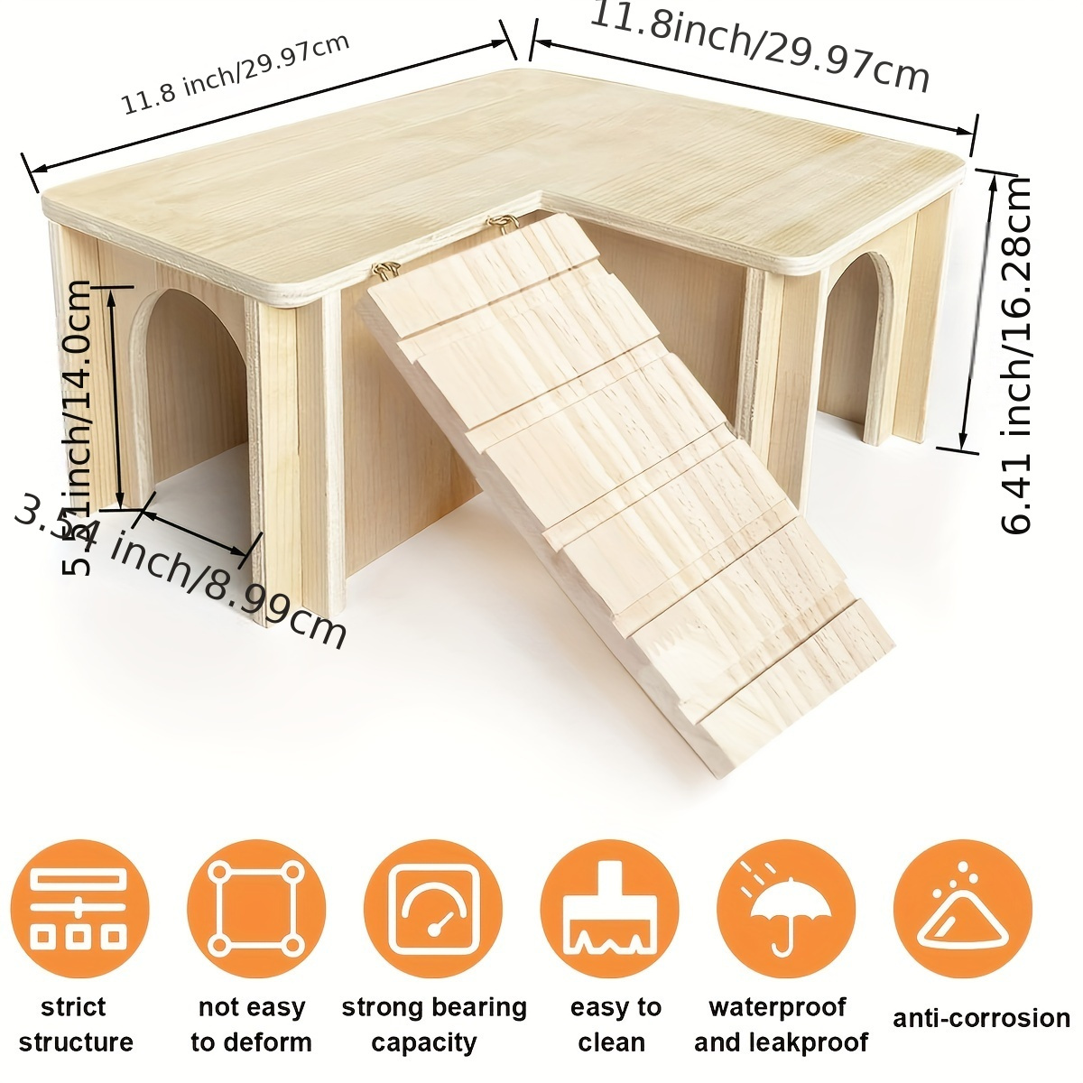 Deine Meerschweinchen werden dieses Holzhaus lieben! Mit 45x26x5cm Größe und doppelschichtigem Dach für extra Versteckmöglichkeiten. Die Anti-Rutsch-Rampe ermöglicht sicheres Klettern zwischen den Etagen. Aus natürlichem, ungiftigem Holz gefertigt - absolut sicher für deine kleinen Freunde. Das abnehmbare Dach macht die Reinigung super einfach. Perfekt für Meerschweinchen, Hamster, Kaninchen und andere Kleintiere. Bringt Abwechslung in den Käfig und fördert die Bewegung!