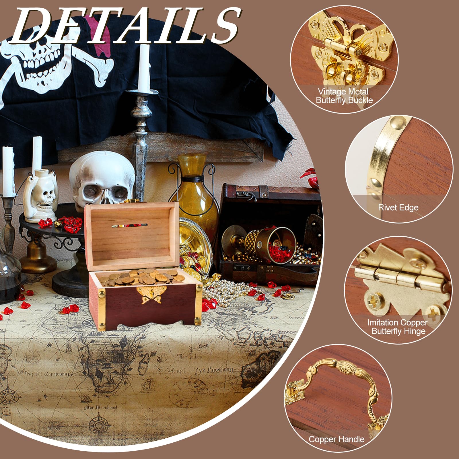 Suchst du eine coole Truhe für Schmuck, Spiele oder als Deko? Diese vintage Schatztruhe aus Holz ist perfekt! Sie hat ein 3-stelliges Zahlenschloss aus Legierung, ist 24 x 17 x 9,5 cm groß und innen mit 23 x 16 x 8,5 cm richtig praktisch. Die Truhe ist aus stabilem Holz mit Metallbeschlägen, sieht antik aus und ist handgefertigt. Super für Kindergeburtstage, als Fotorequisite oder Hinweisbox bei Spielen. Du kannst sie auch als Geschenkverpackung nutzen – einfach Code einstellen und überraschen! Robust, sicher und vielseitig – hol dir die Schatztruhe und verleihe deinem Zuhause einen besonderen Flair!