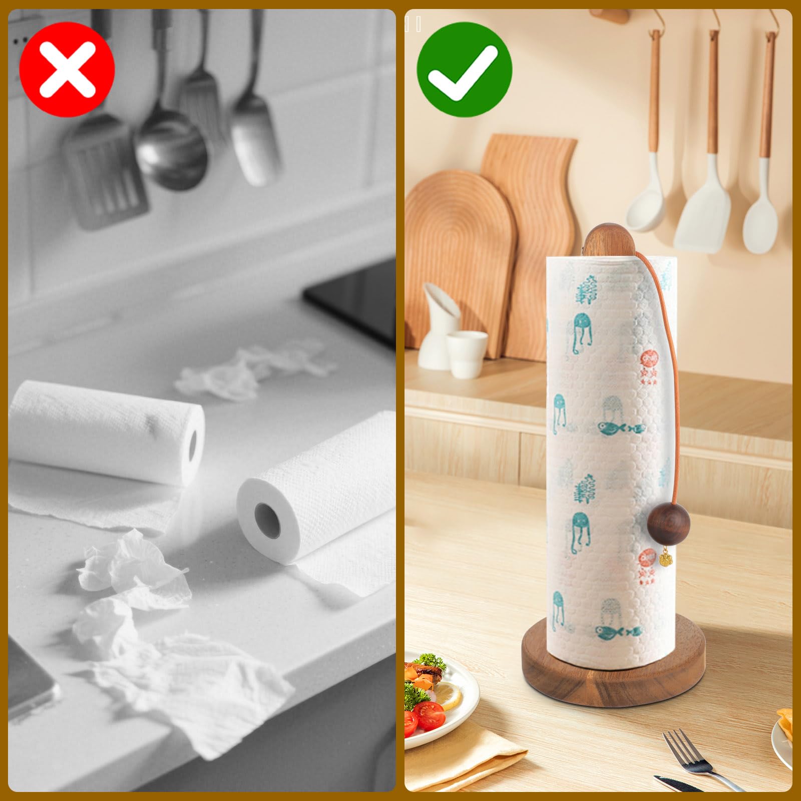 Diese zwei Küchenrollenhalter aus Holz bringen Ordnung und Stil in deine Küche! Mit 29 cm Höhe und 16 cm Durchmesser sind sie kompakt genug für jede Arbeitsplatte, aber stabil genug, um nicht umzukippen. Das schlichte Holdesign passt zu jeder Einrichtung - ob modern oder landhausmäßig. Die rutschfeste Basis hält sicher auf glatten Oberflächen und die sanfte Rotationsfunktion macht das Abreißen der Küchenrolle super einfach. Einfach leicht drehen und schon hast du dein Stück Papier - kein lästiges Ziehen und Reißen mehr! Aus nachhaltigem Holz gefertigt, sind diese Halter nicht nur praktisch, sondern auch umweltfreundlich. Perfekt für Küche, Bad, Wohnzimmer oder sogar das Büro. Einfach mit einem feuchten Tuch abwischen und sie sehen aus wie neu. Mit 2 Stück im Set kannst du mehrere Räume ausstatten oder einen als Geschenk weitergeben - praktisch und dekorativ zugleich!