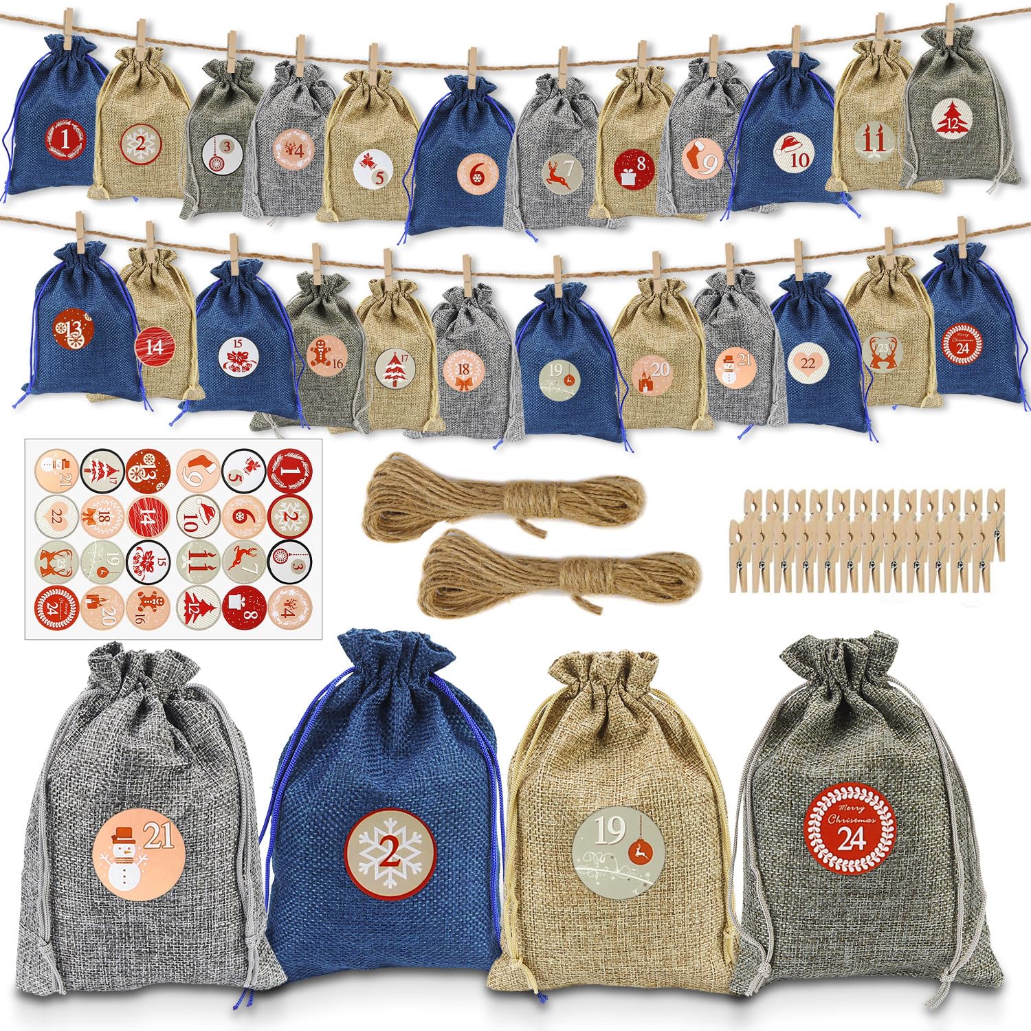 Die Vorfreude auf Weihnachten wird mit diesen niedlichen Adventskalender-Säckchen noch schöner! Das Set enthält 24 Jute-Säckchen in Rot und Naturfarben - perfekt um für jeden Tag im Advent eine kleine Überraschung zu verstecken. Mit 18x13cm sind sie groß genug für richtig schöne Geschenke, nicht nur für Süßigkeiten! Dazu gibt es 10 Meter Schnur und 24 Mini-Holzklammern zum Aufhängen. Ob an der Wand, am Kamin oder am Weihnachtsbaum - du kannst die Säckchen überall befestigen. Jedes Säckchen hat ein einzigartiges Design, das sowohl Kinder als auch Erwachsene begeistert. Aus natürlicher Jute gefertigt sind sie umweltfreundlich und können Jahr für Jahr wieder verwendet werden. Der rustikale Look passt perfekt zur Weihnachtszeit und verbreitet sofort gemütliche Stimmung. Du kannst sie nicht nur als Adventskalender nutzen, sondern auch als Geschenkverpackung oder Deko-Element. Deiner Kreativität sind keine Grenzen gesetzt! Füll sie mit kleinen Spielzeugen, persönlichen Botschaften, Tee oder Schokolade - jeden Tag eine neue Freude für deine Liebsten. Weihnachten kann kommen!