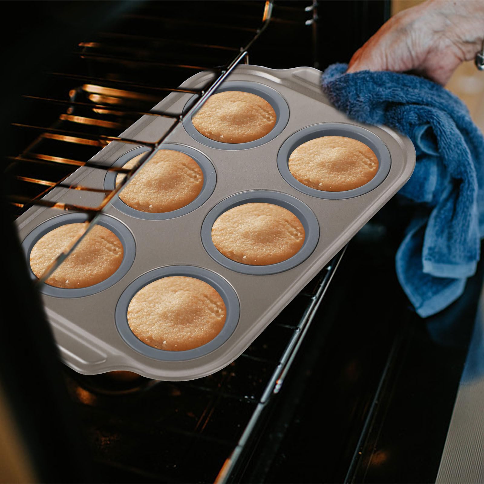 Moin Backfans! Diese Muffinform aus Karbonstahl ist echt n Game-Changer. Das Set kommt mit zwei praktischen Backblechen - jedes für 6 Muffins - und zwei Bürsten für die einfache Reinigung. Die Formen sind aus robustem Karbonstahl, der die Hitze super gleichmäßig verteilt. So backen deine Muffins und Cupcakes immer schön gleichmäßig durch, ohne angebrannte Stellen. Die Antihaftbeschichtung ist lebensmittelecht - da bleibt nix kleben! Einfach nachm Backen kurz auskühlen lassen und die Teile purzeln quasi von selbst raus. Maße sind 26,5x18,5x2,8 cm - passt also in die meisten Backöfen. Aber wusstest du, dass du damit nicht nur Muffins backen kannst? Versuch mal Omelettes, Brownies oder Mini-Quiches - klappt genauso gut! Die Formen sind hitzebeständig bis 220°C und verziehen sich nicht. Nachm Benutzen einfach mit warmem Wasser und Spüli reinigen - die Bürsten helfen bei eingebrannten Resten. Super als Geschenk für Hobby-Bäcker oder um deine eigene Küche aufzurüsten. Die goldene Beschichtung sieht übrigens auch noch richtig edel aus. Ob für Familienfeiern, Geburtstage oder einfach so - mit diesen Backformen wird jedes Backprojekt n Erfolg!