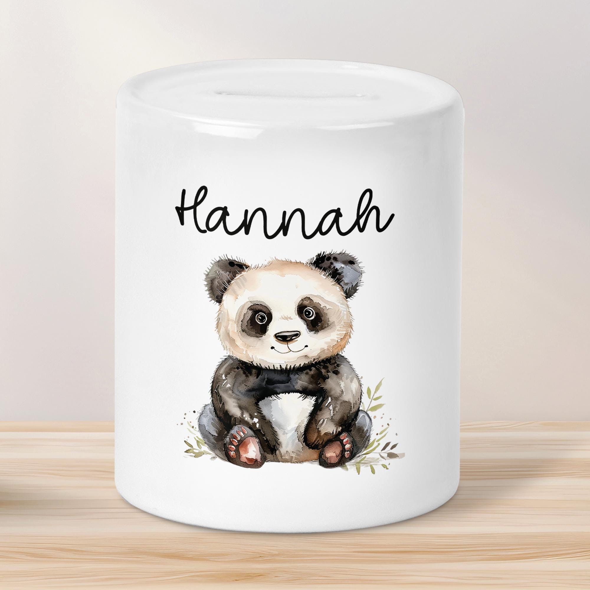 Oh, diese Panda-Spardose ist ja mega süß! Die Keramik-Dose ist beidseitig bedruckt und kann sogar mit einem Namen personalisiert werden. Mit 8 cm Durchmesser und 9,5 cm Höhe ist sie genau die richtige Größe für's Sparschwein ersetzen. Das Besondere: An der Unterseite ist ein Gummistöpsel, mit dem du das Geld easy rausholen kannst, ohne die Dose kaputt zu machen. Perfekt als Geschenk zur Einschulung, zum Geburtstag oder als originelles Geldgeschenk zur Hochzeit. Stell dir vor, wie sich dein Liebling freut, wenn er seinen eigenen Namen auf der süßen Panda-Dose sieht! Die Oberfläche ist super glatt und hochwertig verarbeitet - das merkt man sofort. Ob fürs Taschengeld, als Trinkgeld-Kasse oder für's Sparziel - diese Dose macht einfach Spaß. Und mit etwa 360 Gramm liegt sie auch schön schwer in der Hand. Einfach ein tolles Geschenk für Jung und Alt, das garantiert für strahlende Augen sorgt!