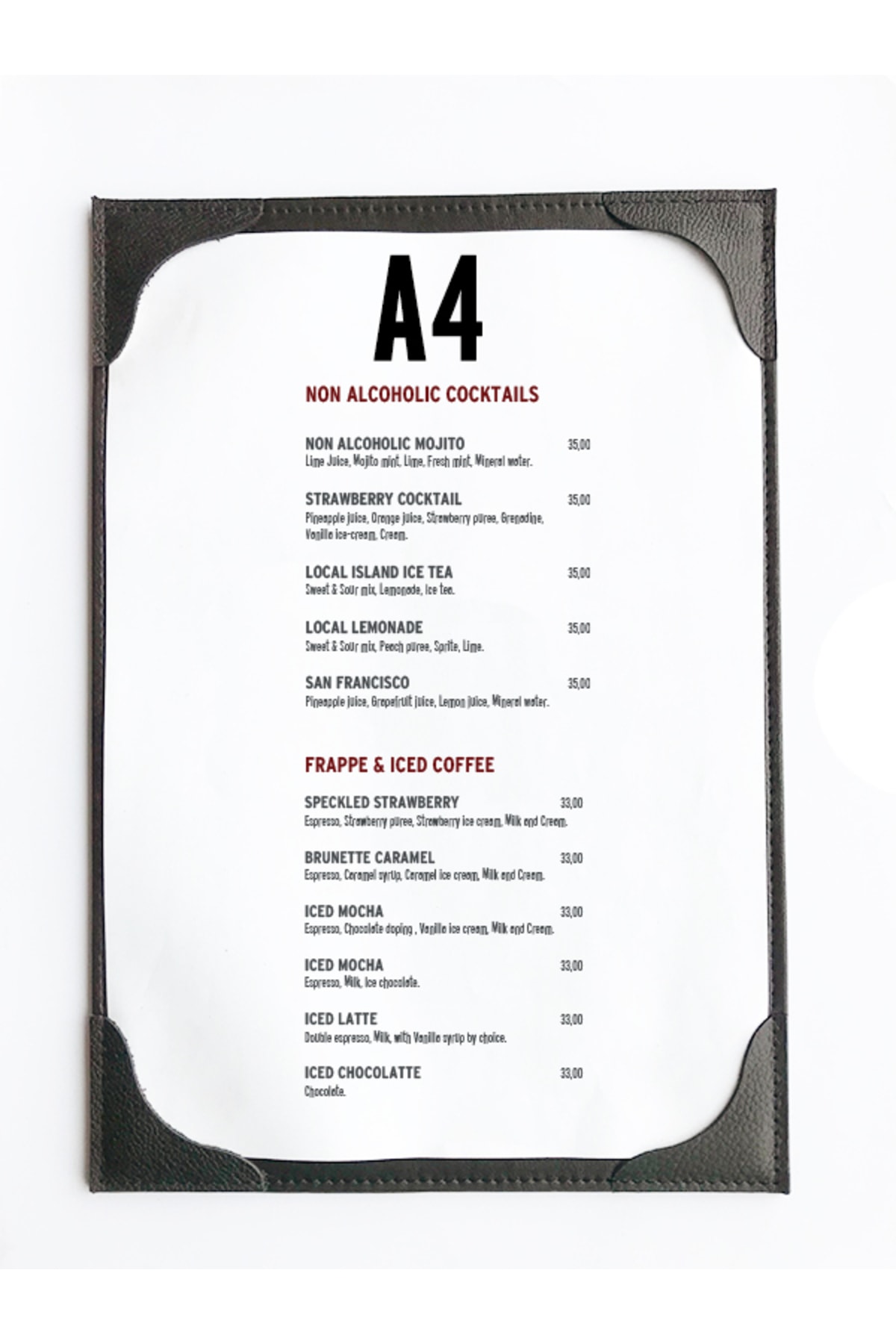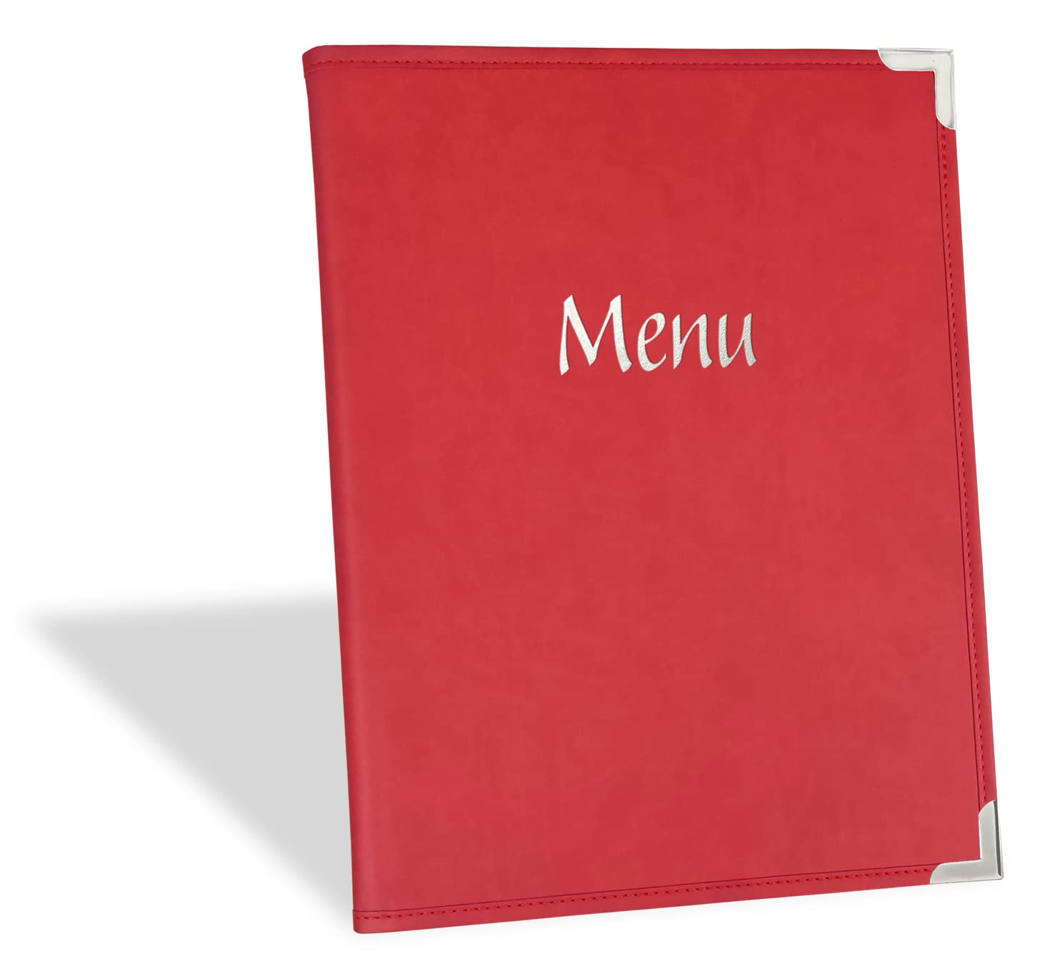 Wow, diese Menühülle ist genau das Richtige für dein Restaurant oder Café! In schickem Grau aus hochwertigem Kunstleder - sieht aus wie echtes Leder, ist aber viel pflegeleichter! Mit 4 silberfarbenen Eckverstärkungen und edlen Ton-in-Ton-Steppnähten macht das richtig was her! Das Wort 'Menu' ist in heißem Silber eingraviert - richtig edel! Lieferung inklusive 2 Einlegeböden, die du mit 4 praktischen Schnellspannern ganz easy wechseln kannst! Vier Ansichten bedeuten: Platz für deine komplette Speisekarte! Super für Wechselkarten - einfach die Böden tauschen und schon hast du ein neues Menü! Perfekt für alle Gastronomie-Betriebe: Restaurants, Hotels, Bars oder Cafés! Schützt deine Menüs vor Flecken und Verschleiß - hält einfach länger schön! Die silbernen Akzente passen zu fast jedem Einrichtungsstil! Einfach die A4-Seiten reinklemmen - fertig! Sieht so professionell aus, deine Gäste werden begeistert sein! Macht jeden Tisch gleich viel hochwertiger! Einfach ein muss für jeden, der Wert auf gutes Design legt! Bestell gleich mehrere - für alle Tische deines Lokals!