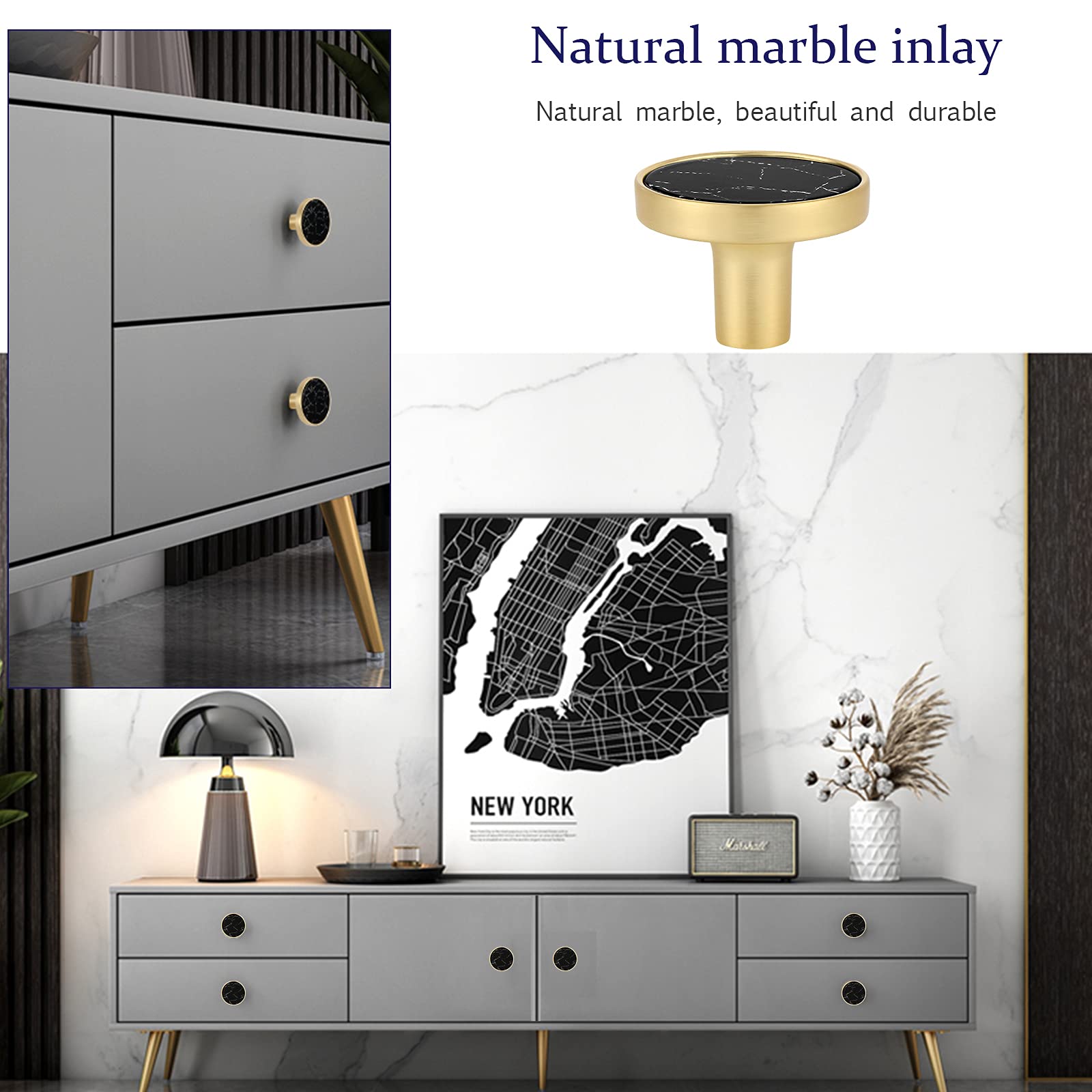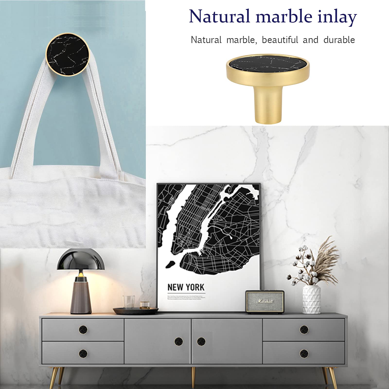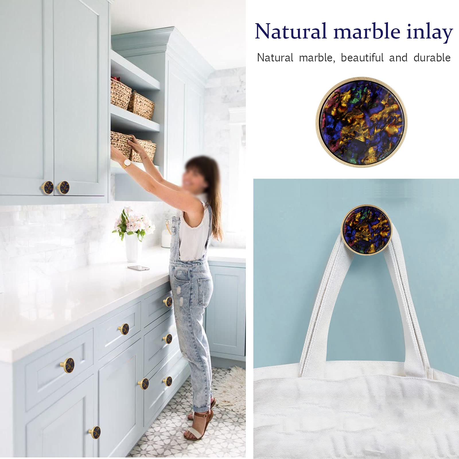 Boah, diese Schrankknäufe sehen einfach mega edel aus! Jeder Knauf ist handgefertigt aus echtem Marmor und hat eine schicke Messing-Basis. Das Tolle: Keiner ist wie der andere - jedes Stück ist ein Unikat! Mit den 8 Knäufen im Set kannst du gleich mehrere Schränke oder Kommoden aufwerten. Sie passen super in die Küche, ins Bad oder Wohnzimmer. Die Verarbeitung ist erstklassig - das Zinklegierung ist langlebig und leicht zu reinigen. Und weißt du was? Du kannst sie nicht nur als Schrankgriffe verwenden, sondern auch als dekorative Kleiderhaken an der Wand! Das Installieren ist total einfach: Einfach Loch bohren, Dübel rein, Schraube festdrehen - fertig! Die Lieferung enthält alles was du brauchst: 8 Knäufe, Schrauben und Dübel. So bekommst du ganz easy ein hochwertiges Ambiente in deinen vier Wänden. Perfekt für alle, die ihrem Zuhause einen luxuriösen Touch verleihen wollen!