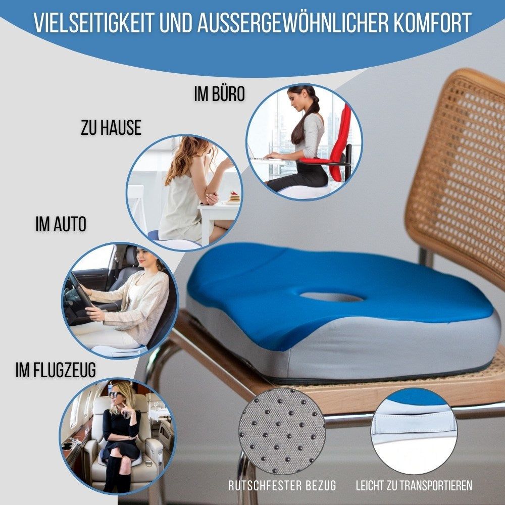 Rückenschmerzen vom vielen Sitzen? Dieses Angoily Sitzkissen wird dein neuer bester Freund! Aus atmungsaktivem Memory Schaum, der sich perfekt deiner Körperform anpasst. Besonders praktisch: Es hebt dein Becken leicht an, was deine Sitzhaltung automatisch verbessert. Ob im Büro, Homeoffice, Auto oder in der Schule - überall einsetzbar! Entlastet spürbar Steißbein, Hüfte und Ischias - du wirst den Unterschied sofort merken. Der Schaum kehrt immer wieder in seine Ursprungsform zurück - auch nach langem Sitzen. Besonders angenehm bei langen Autofahrten oder Bürotagen. Leicht und praktisch - einfach mitnehmen wohin du willst. Dein Rücken wird es dir danken! Einfach auf den Stuhl legen, draufsetzen und sich über den verbesserten Sitzkomfort freuen. Kleine Investition, großer Effekt!
