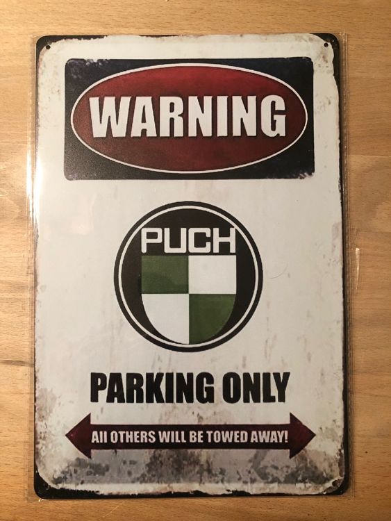 Perfekt für alle Puch-Fans und Motorradbesitzer! Dieses robuste Blechschild im klassischen Warn-Design macht sofort klar: Hier parken nur Puch-Motorräder. Mit den Maßen 30x20 cm ist es gut sichtbar, aber nicht zu aufdringlich. Die matte Lackierung sieht nicht nur hochwertig aus, sondern ist auch UV-beständig - da macht dir die Sonne nichts aus! Die vier Randlöcher machen die Montage super einfach, und die praktische Kordel ist schon mit dabei. Ob im Innenbereich oder draußen - dieses Schild hält was aus und sieht dabei noch richtig gut aus. Aus hochwertigem Blech gefertigt, hochgeprägt für eine tolle Optik und Haptik. Ein muss für jede Werkstatt, Garage oder den privaten Motorrad-Stellplatz!