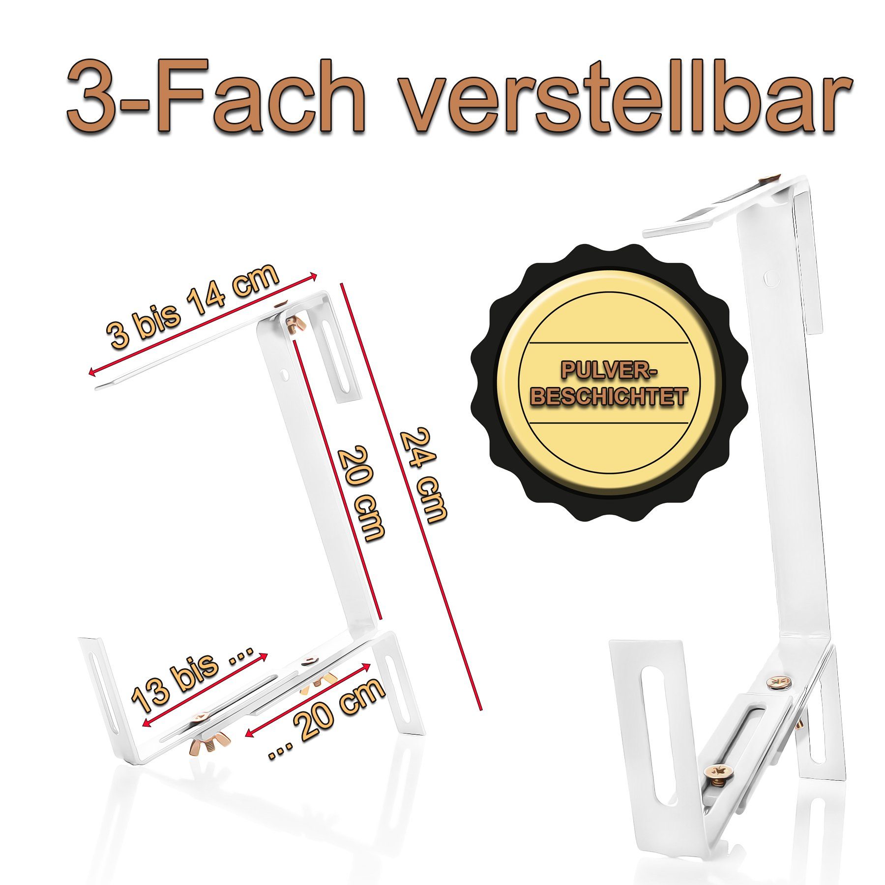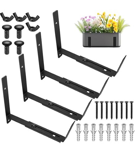Deine Blumen verdienen den besten Platz! Mit diesen 4 praktischen Blumenkastenhaltern aus robustem Eisen machst du aus jedem Balkon, Fenster oder Geländer ne grüne Oase. Die Halter sind super flexibel - du kannst die Tiefe von 18 bis 23 cm verstellen, damit verschiedene Blumenkästen perfekt passen. Die schwarze Pulverbeschichtung sieht nicht nur schick aus, sondern schützt auch vor Rost. Und das Beste: Ein Halter trägt bis zu 40 Pfund! Im Lieferumfang ist alles dabei was du brauchst - Schrauben, Dübel und Muttern. Einfach montieren und schon verwandelst du deinen Balkon in ne blühende Pracht. Ob für Blumen, Kräuter oder Gemüse - mit diesen Haltern wird's was!