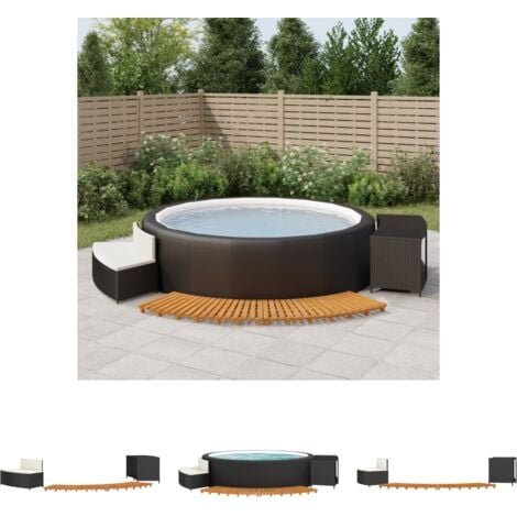 Diese coole Whirlpool-Einfassung macht deinen Garten zum echten Wellness-Oase! Aus stabilem Poly-Rattan und massivem Akazienholz, hält sie auch bei schlechtem Wetter stand. Mit 289x124x56 cm Größe passt sie um die meisten Whirlpools. Das integrierte Mini-Sofa mit Kissen lädt zum Relaxen ein - perfekt nach einem langen Tag. Besonders praktisch: Der Stauraum unter der Sitzbank, wo du Pool-Zubehör ordentlich verstauen kannst. Der stabile Stahlrahmen gibt Sicherheit und die geölte Akazienholz-Oberfläche sieht nicht nur gut aus, sondern ist auch wetterfest. Einfach zusammenzubauen - alles Notwendige ist im Lieferumfang enthalten. Macht deinen Whirlpool-Bereich komplett und sorgt für Urlaubsfeeling im eigenen Garten. Perfekt für gemütliche Abende mit Freunden oder zum alleine Entspannen. Sieht aus wie teure Designer-Möbel, ist aber erschwinglich! Ein echter Hingucker der lange Freude macht.