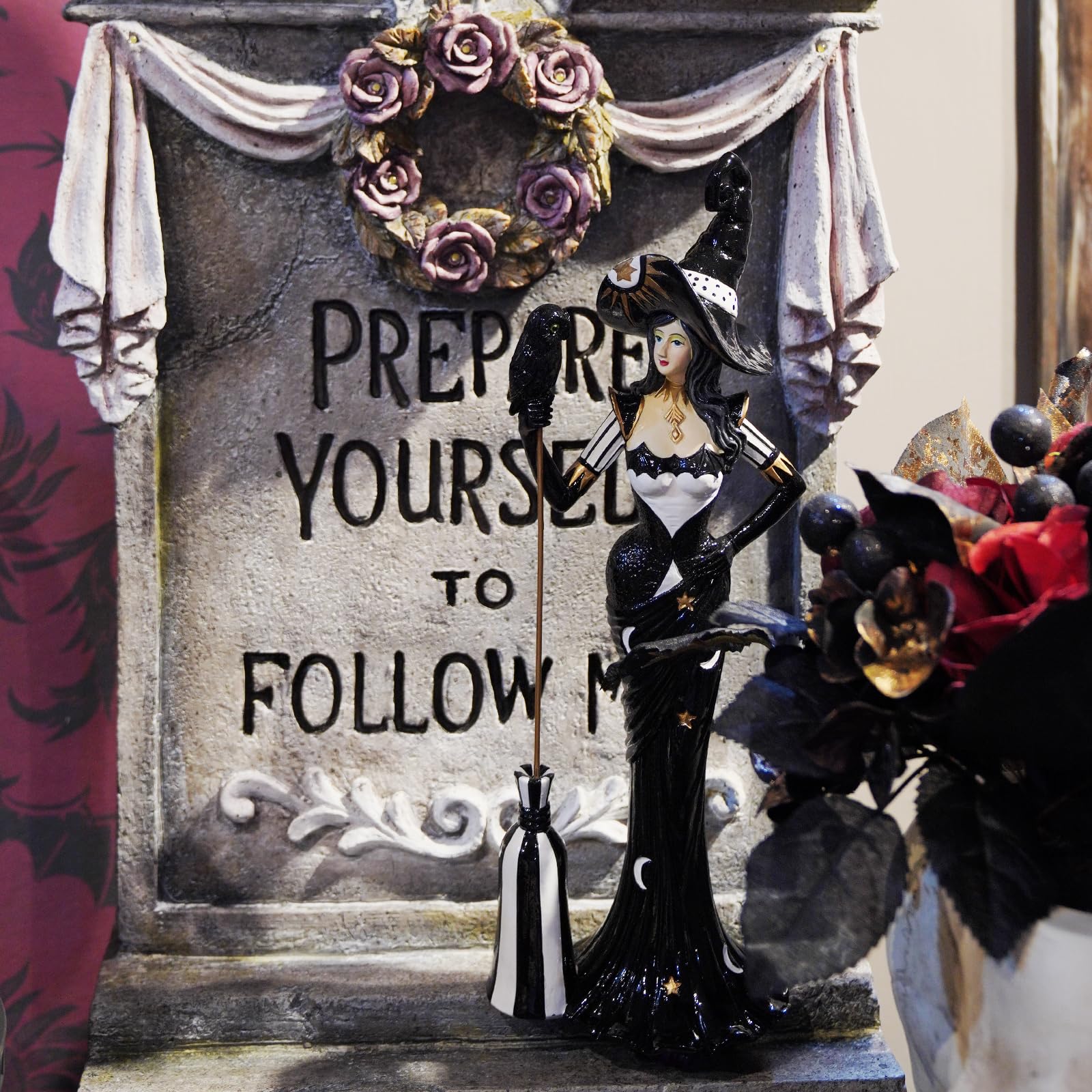 Diese mystische Hexen-Statue ist ein absoluter Hingucker für jede Deko! 20 cm groß, aus hochwertigem Resin mit holzartiger Textur. Detailreich gestaltet mit Fließumhang, Zauberhut und geheimnisvollen Gesichtszügen. Perfekt für Halloween-Dekoration, Gothic-Einrichtung oder mittelalterliche Mottopartys. Super für Regale, Schreibtische, Kaminsimse oder den Hauseingang. Robust verarbeitet und langlebig. Ein einzigartiges Geschenk für Hexen-Fans, Horror-Liebhaber oder Sammler mystischer Figuren. Taucht jeden Raum in eine geheimnisvolle Atmosphäre! Verpackungsgröße: 23,5x10,5x10 cm, Gewicht 263 g.